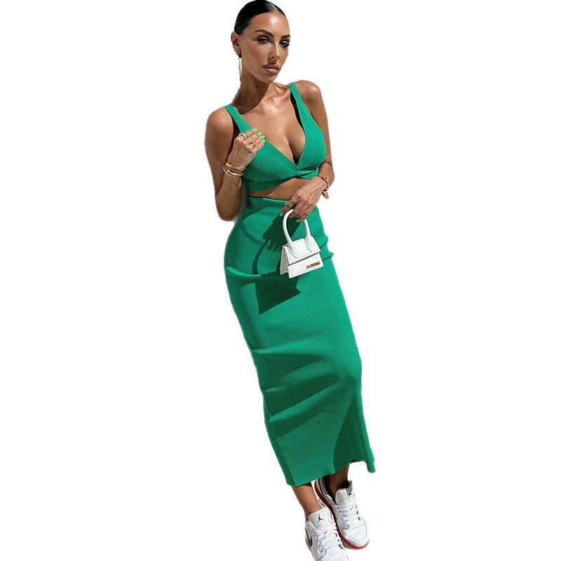 Womens Sexy Deep-V Tank Top And Skirt Set