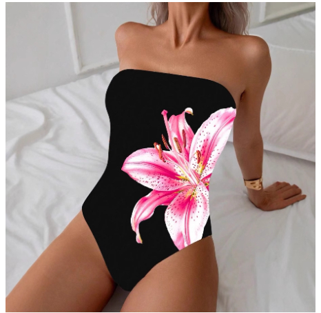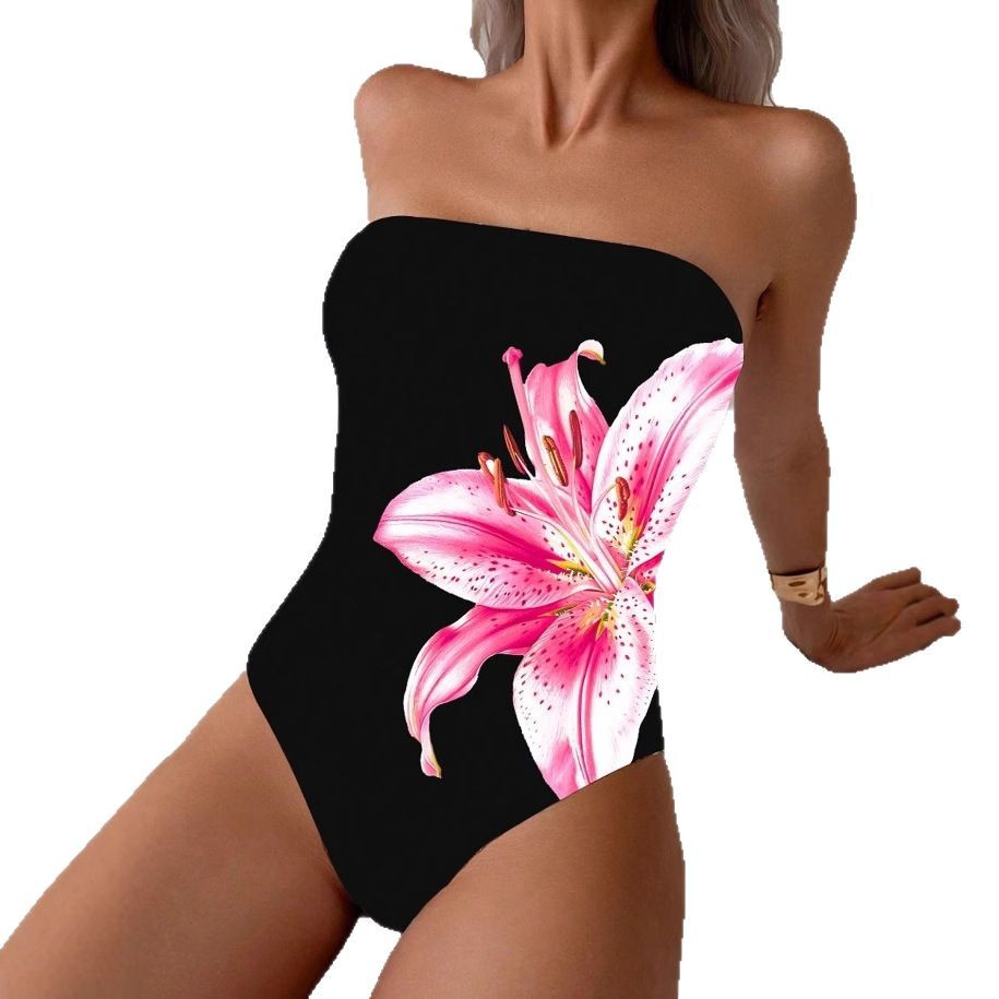 Womens Sexy Floral Print All-in-One Bodysuit With Charming Lily Design