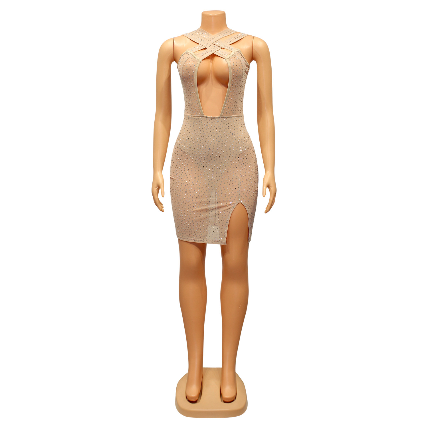 Women's Sexy Mesh Hot Drilling Nightclub Party Dress