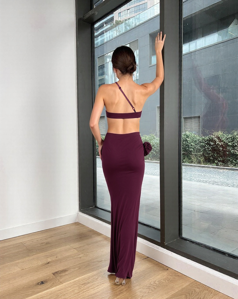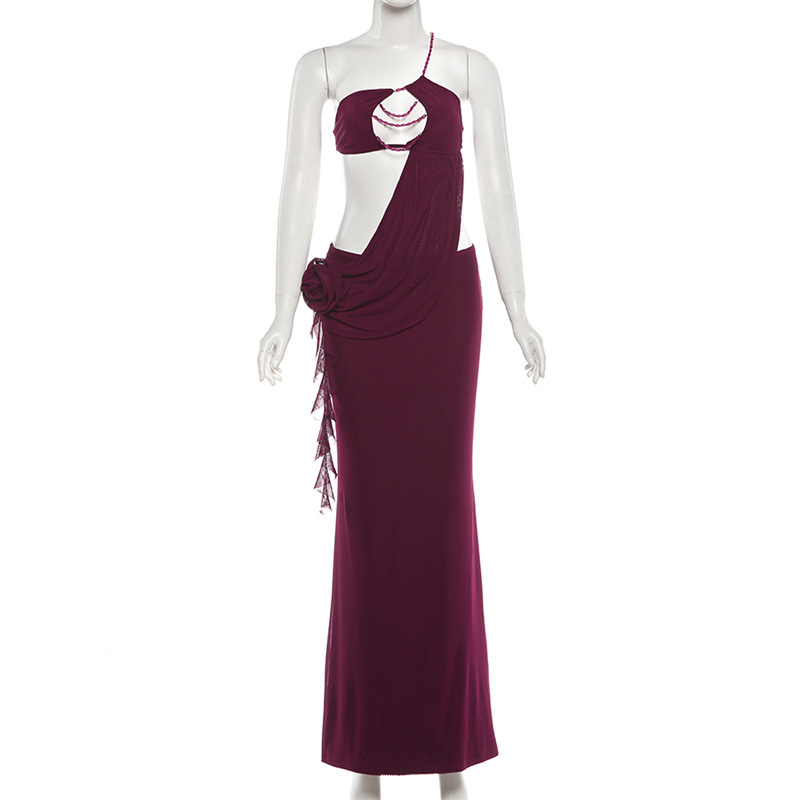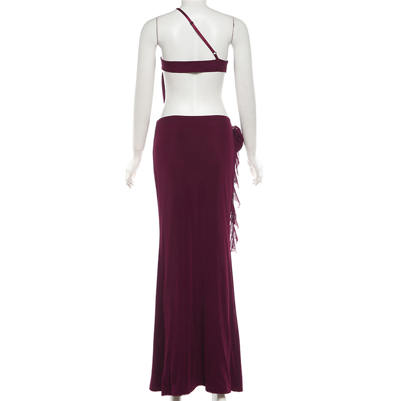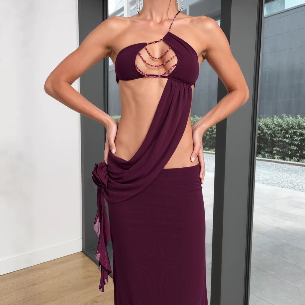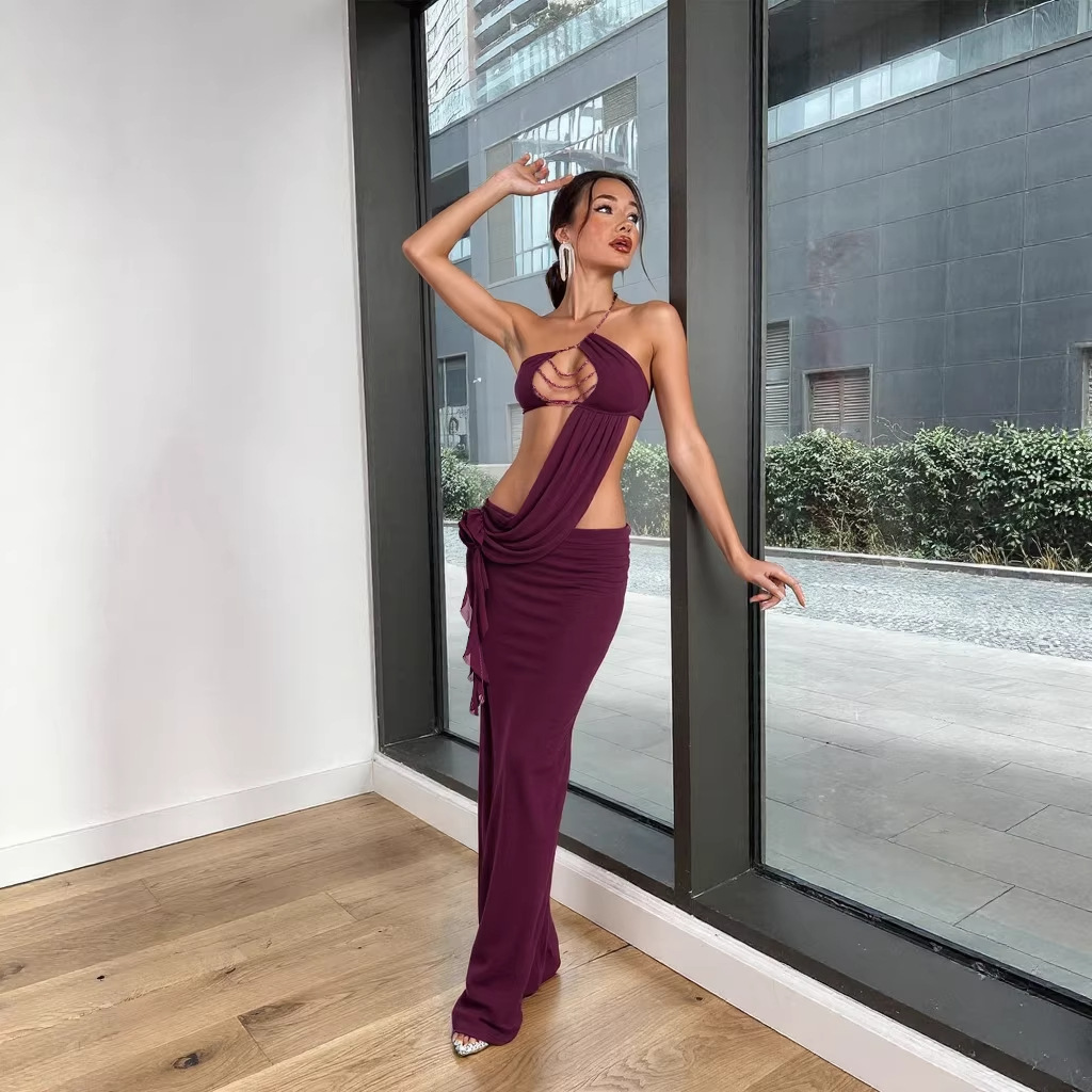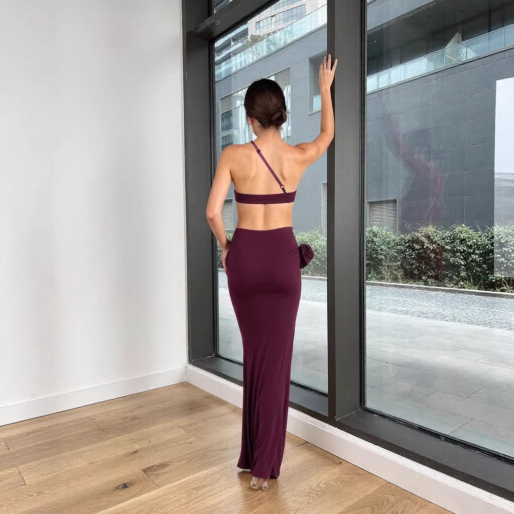 Womens Sexy Midriff-baring One-Shoulder Slip Dress