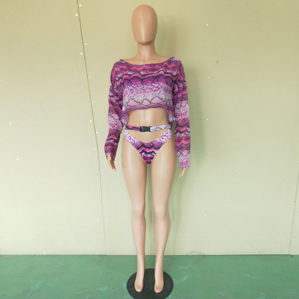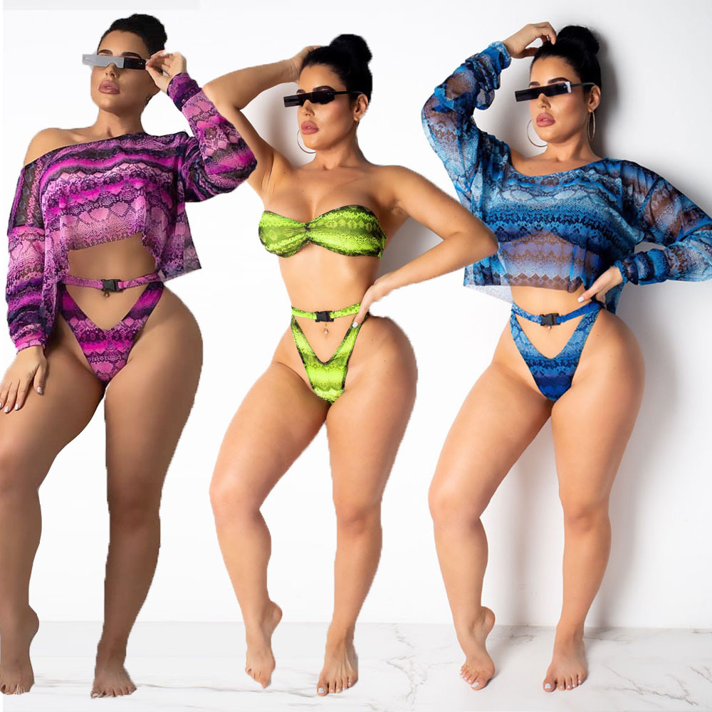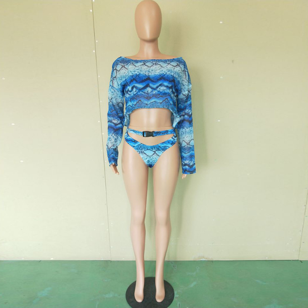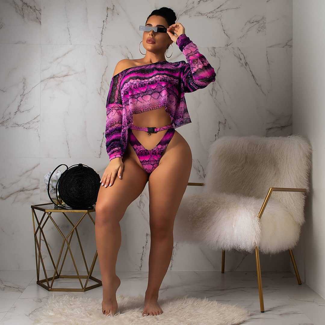 Women's Sexy Snakeskin Printed Split Three-piece Suit