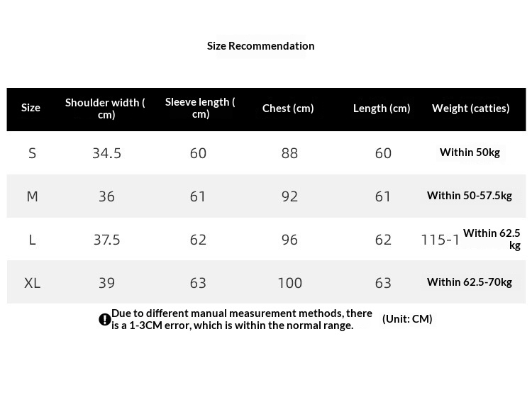 1. Asian sizes are 1 to 2 sizes smaller than European and American people. Choose the larger size if your size between two sizes. Please allow 2-3cm differences due to manual measurement. 2. Please check the size chart carefully before you buy the item, if you don't know how to choose size, please contact our customer service. 3.As you know, the different computers display colors differently, the color of the actual item may vary slightly from the following images.