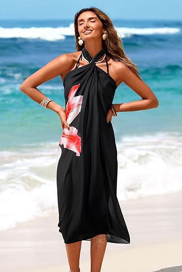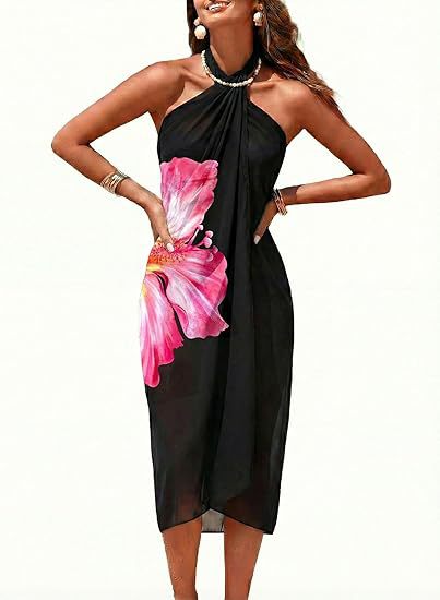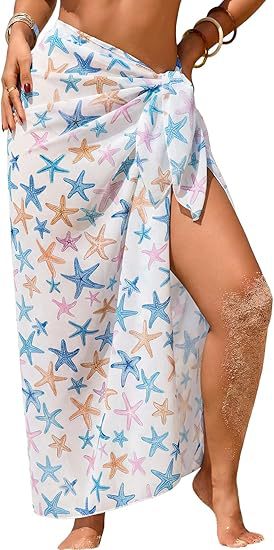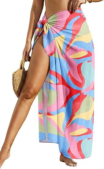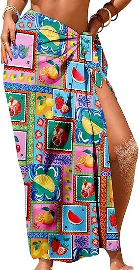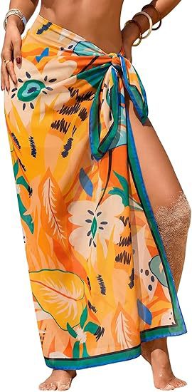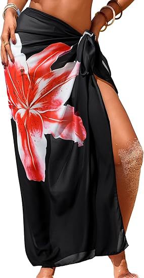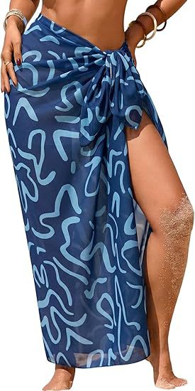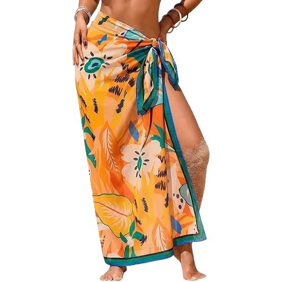 Women's Sheer Sarong High-Slit One-Size Swimsuit Cover-Up