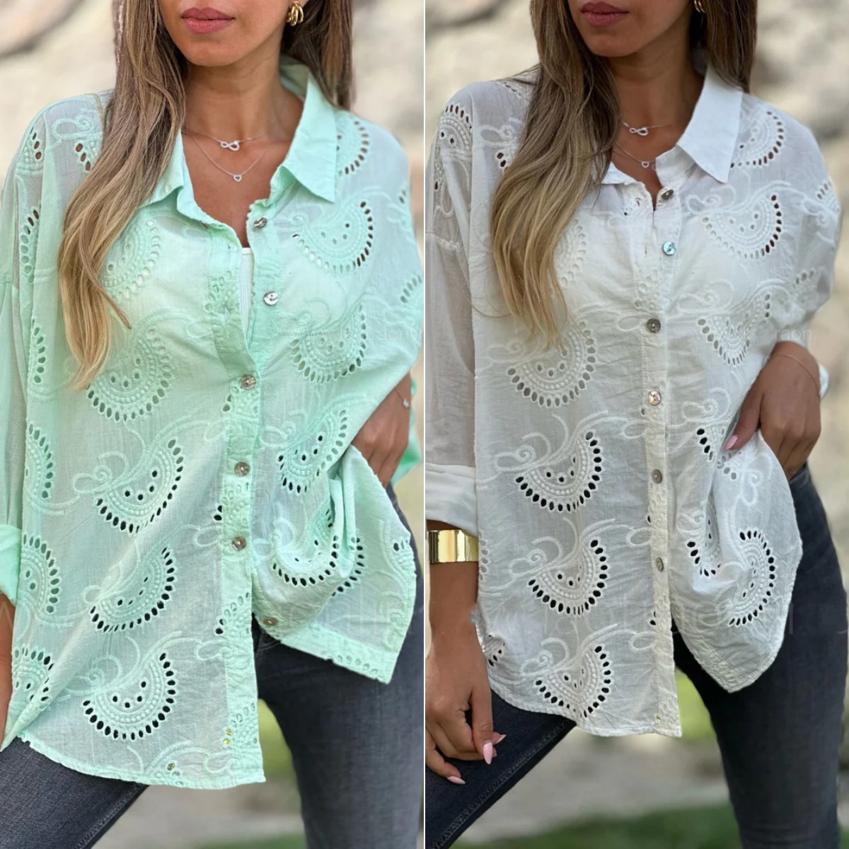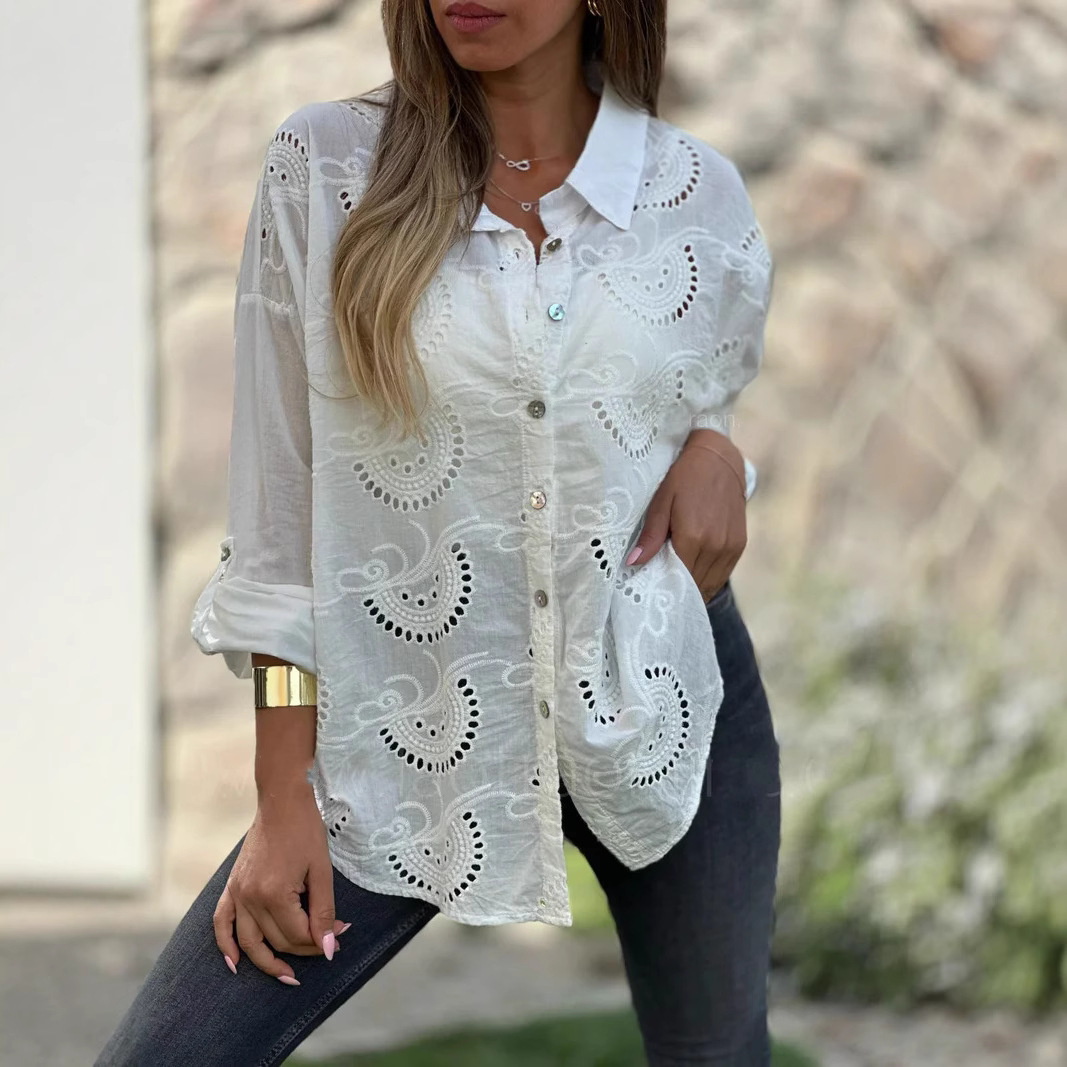 Women's Shirt Collar Loose Embroidery Hollow Out