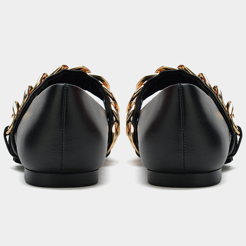 Fabric: MicrofiberHeel height: 1CMDecoration: Plastic chainSubstrate: non-slip outsoleToe shape: pointedWearing style: sleeve/overshoes