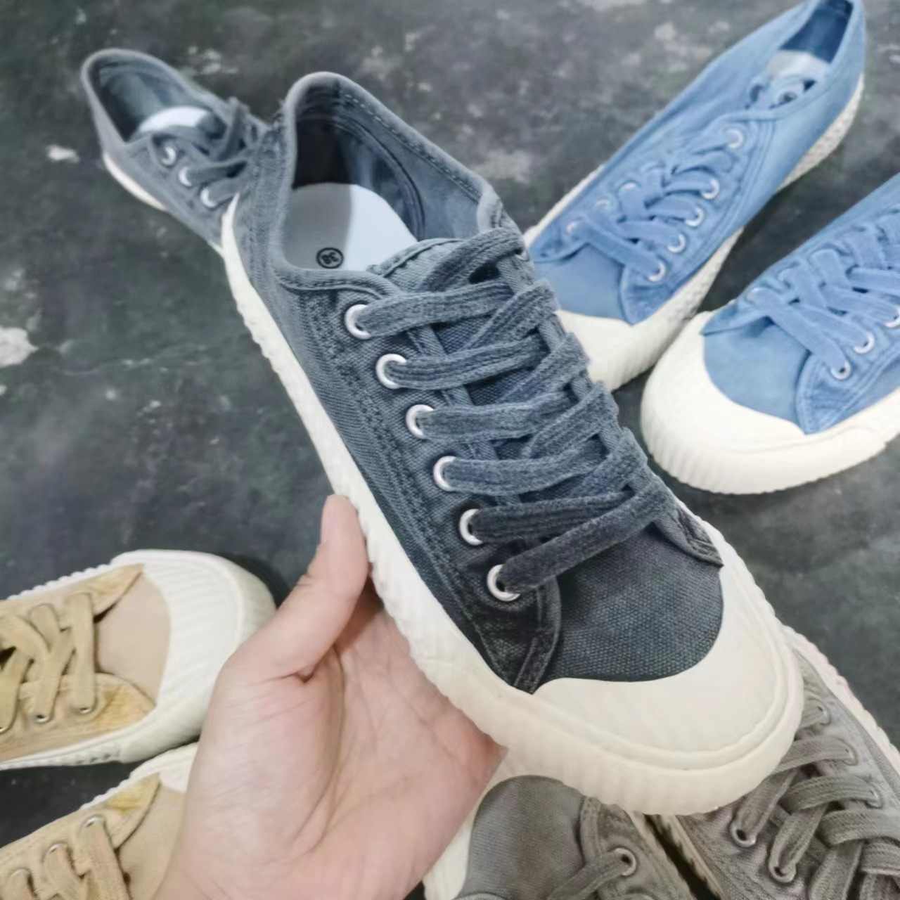 Color: denim blue, light gray, dark gray, khaki