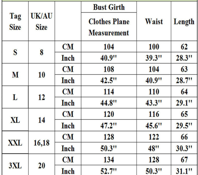 2. Please check the size chart carefully before you buy the item, if you don't know how to choose size, please contact our customer service.