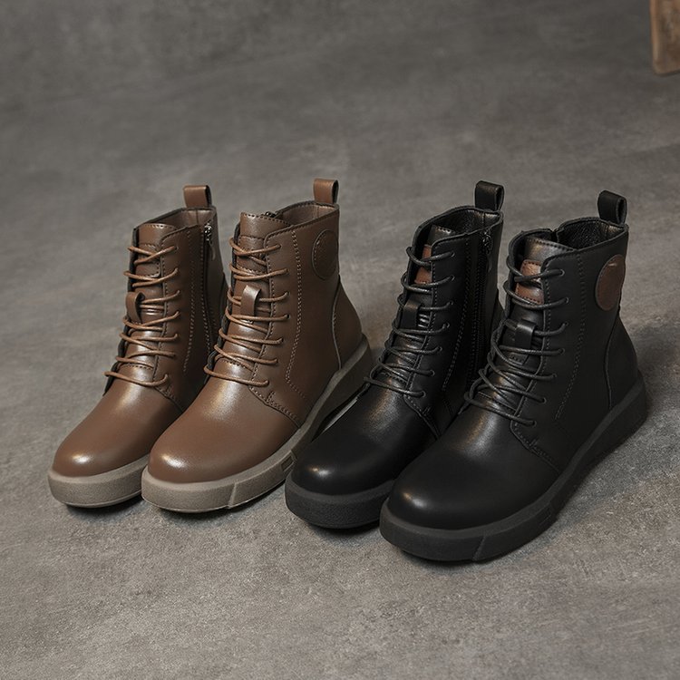 Women's Short Lace-up Flat Ankle Boots