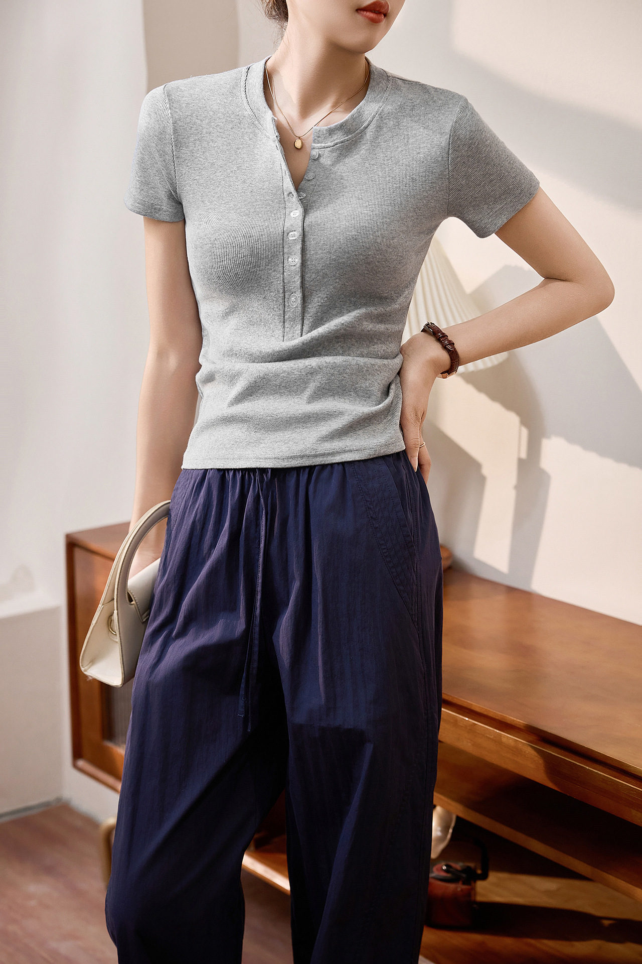 Style: Slant shoulder design