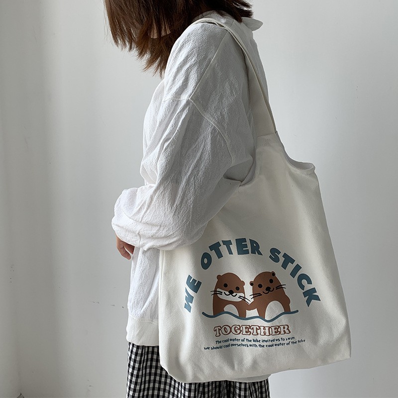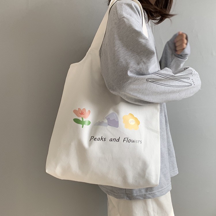Color: orange vest bag white, peach vest bag white, cute animal vest, Mount Fuji flower white, Mount Fuji flower black, Mount Fuji flower green, squirrel white, squirrel black, dog illustration beige bag, dog illustration white bag, dog illustration black bag, whimsical, answer white vest, answer black vest, cartoon bag, red-haired girl, ice cream vest, earphone girl, fruit black vest.