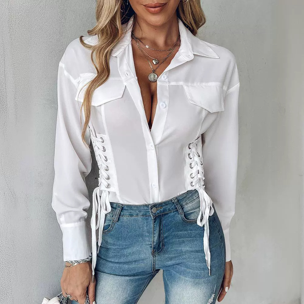 Women's Side Strap Design Slim White Top