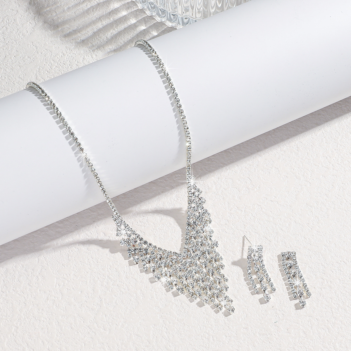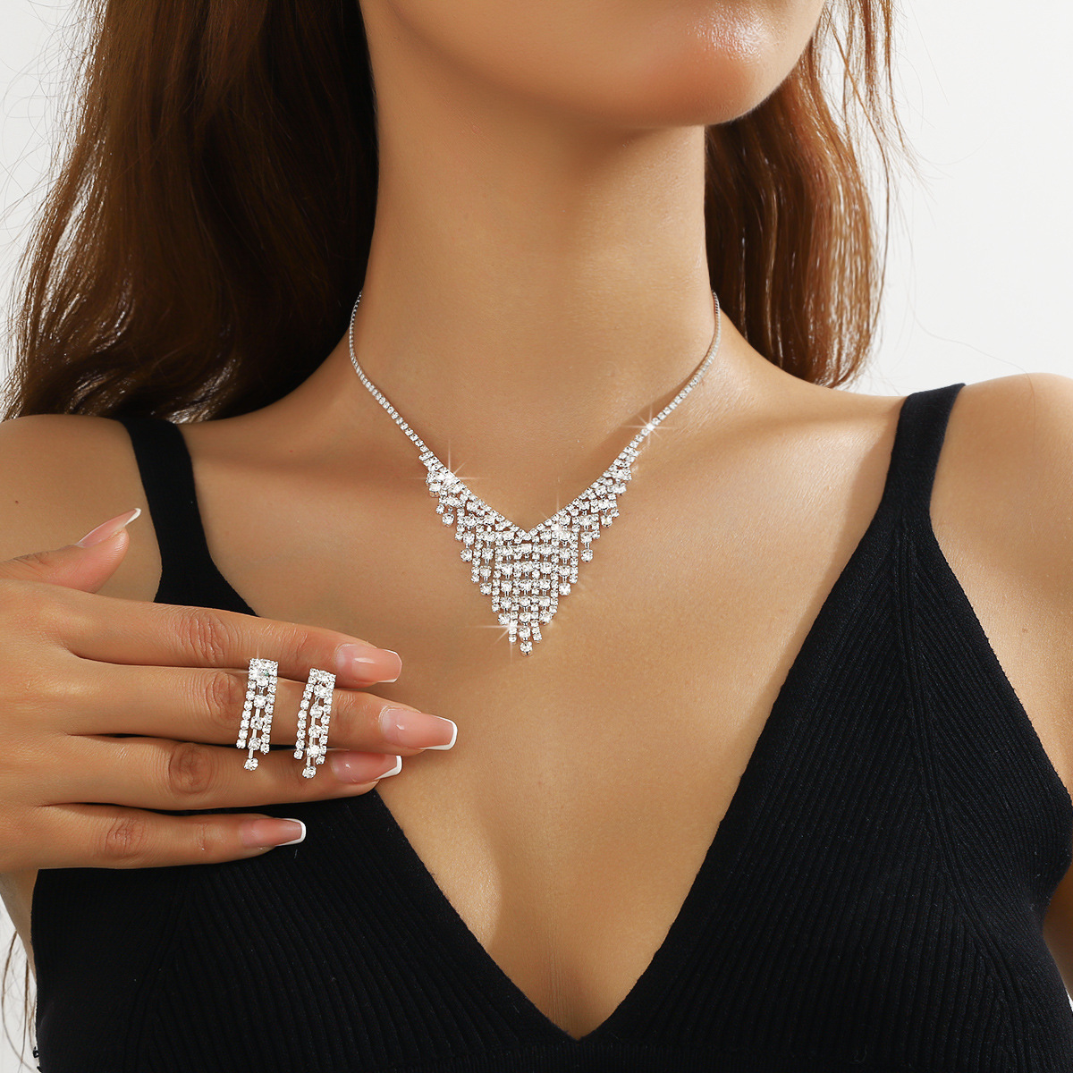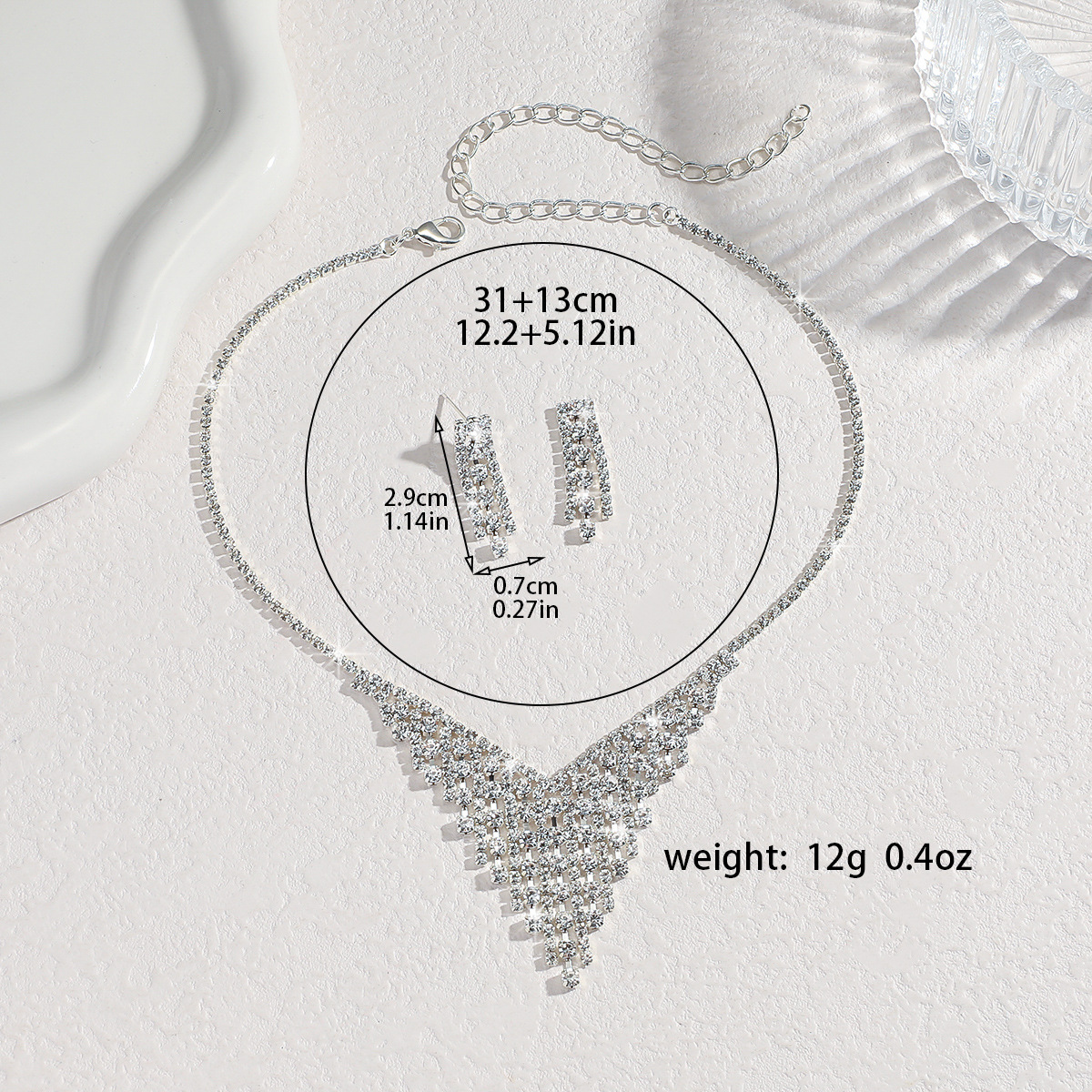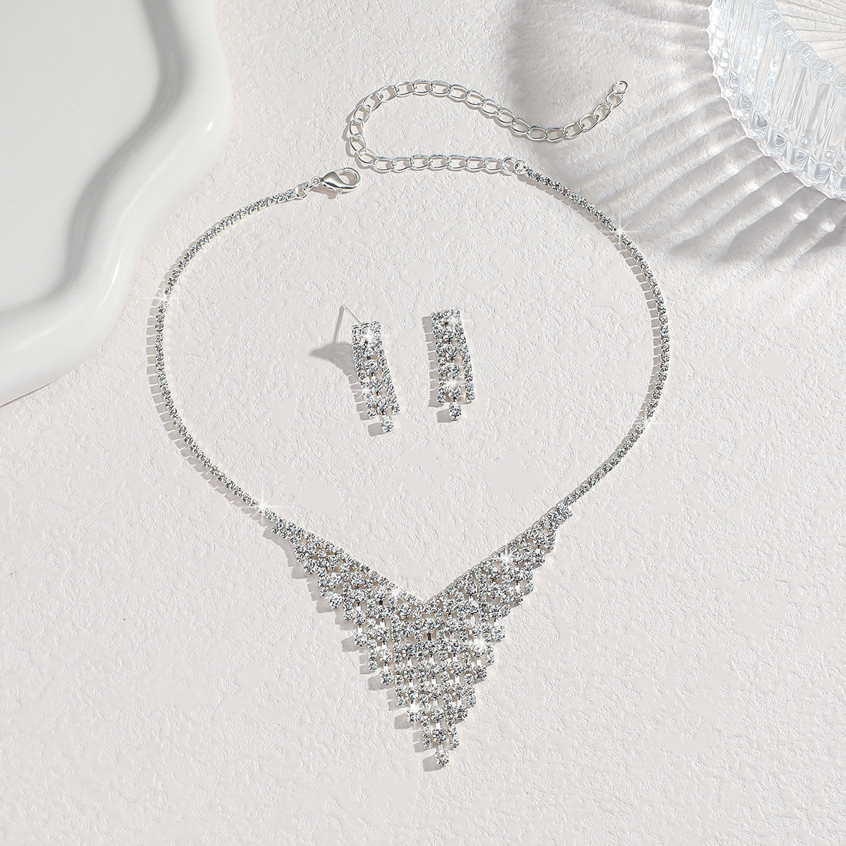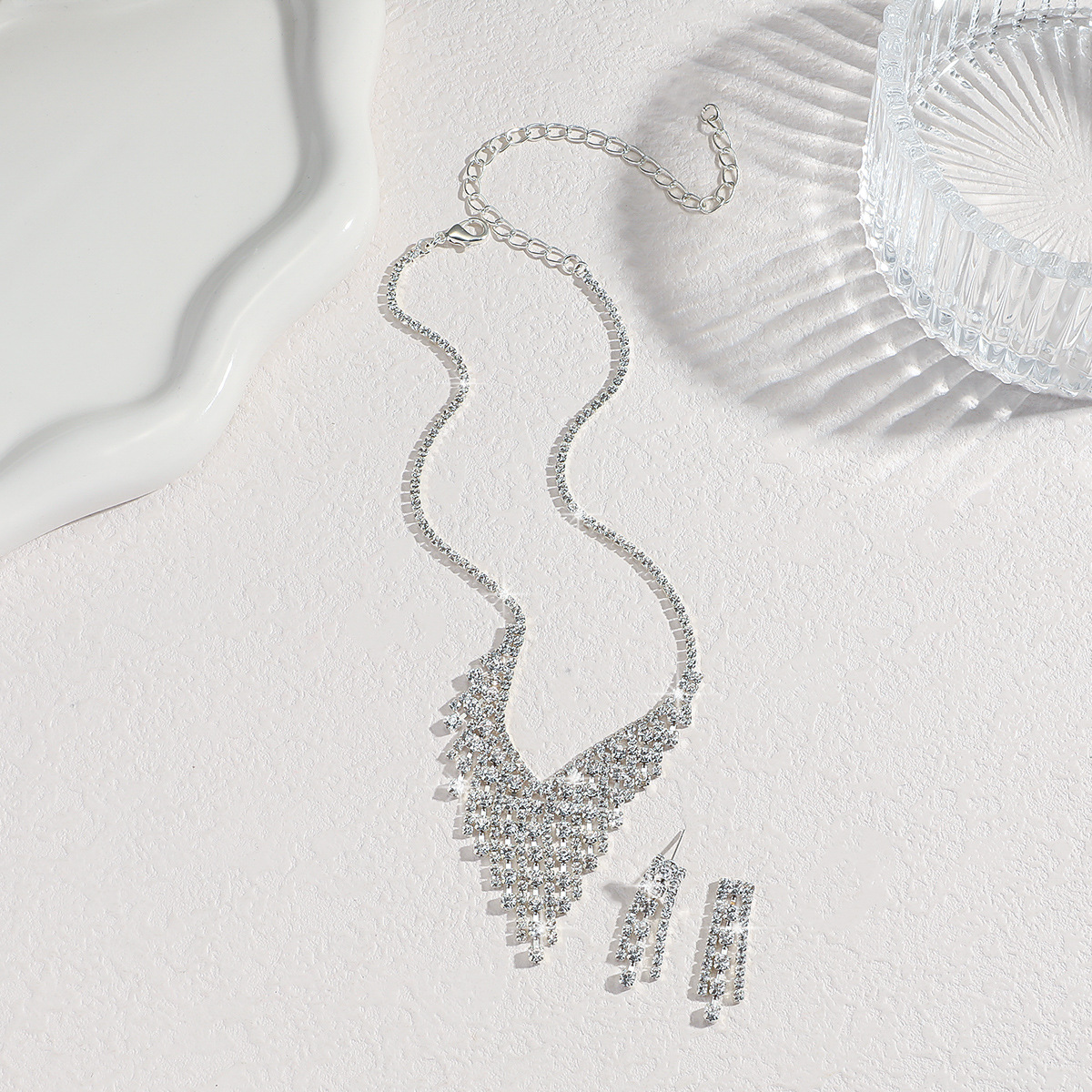 Women's Silver Earrings And Necklace Set