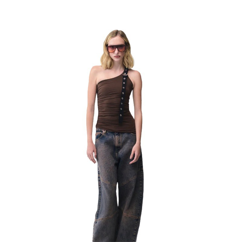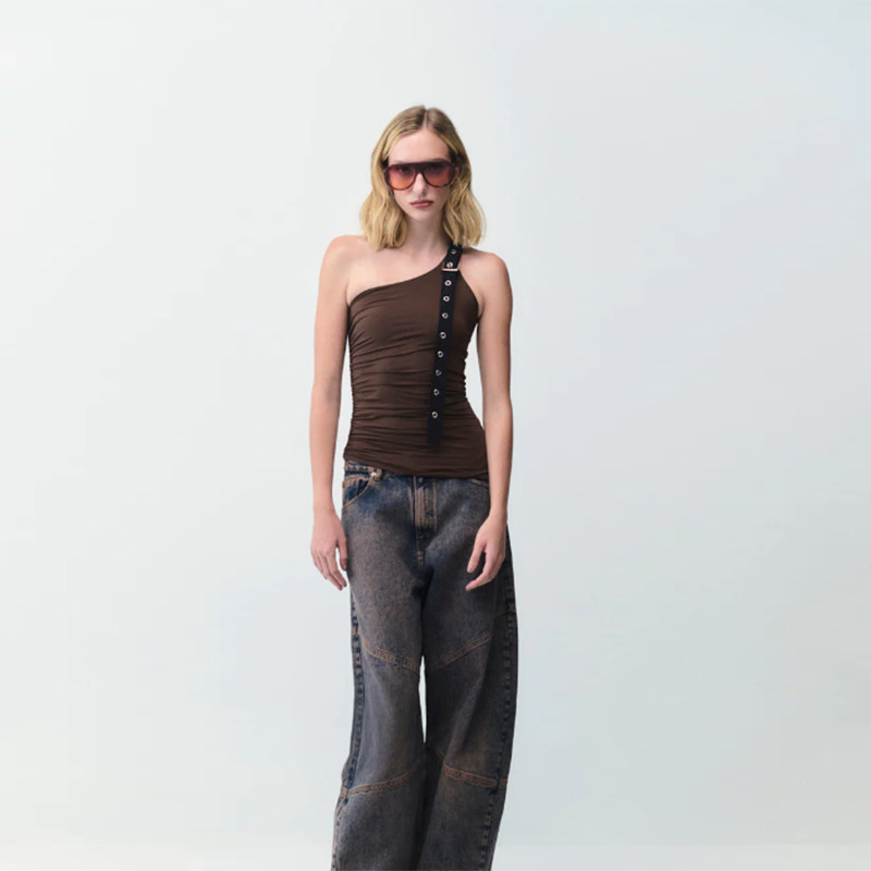 Women's Silver Square-buckle Designed Slim-fit Top