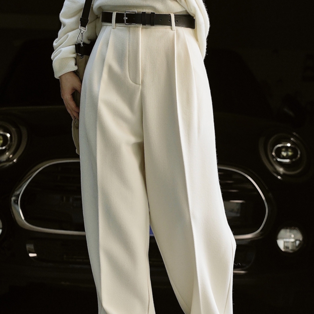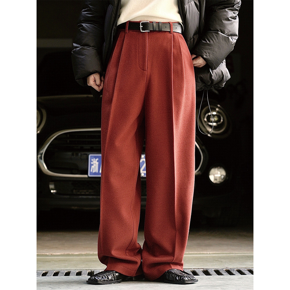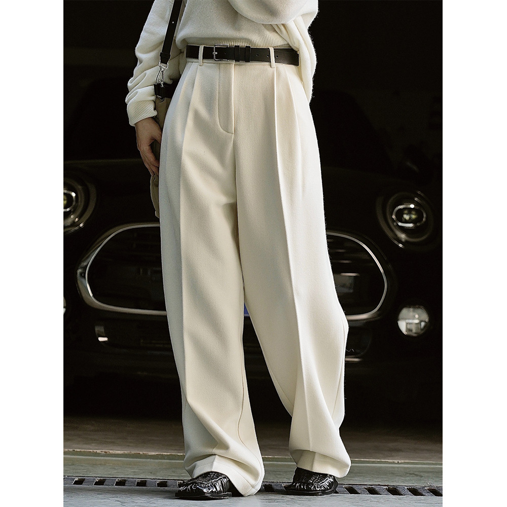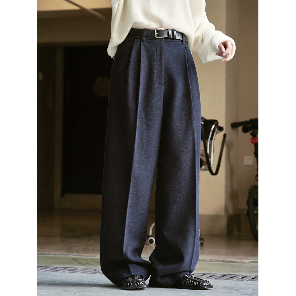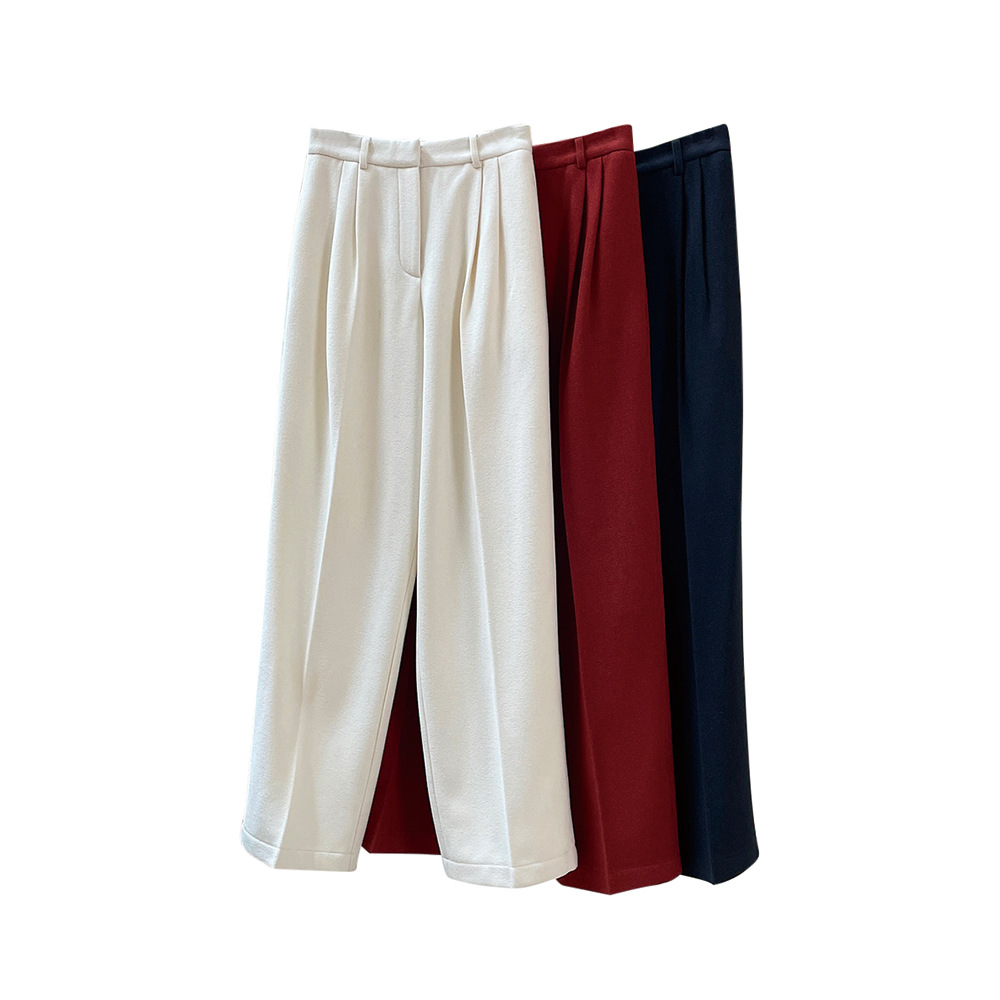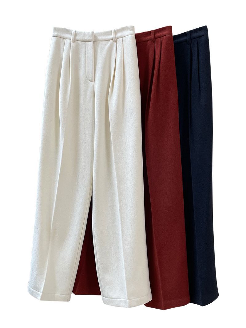 Women's Simple Commute Woolen Straight Wide-leg Pants