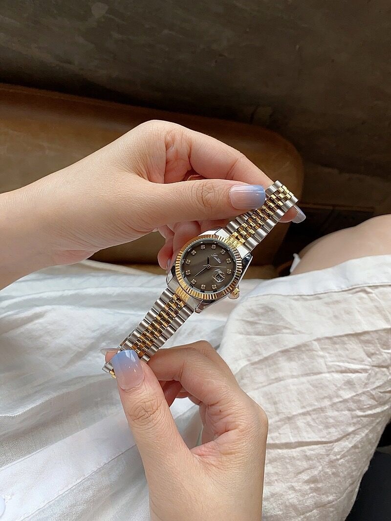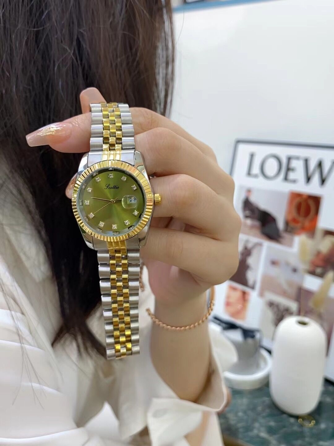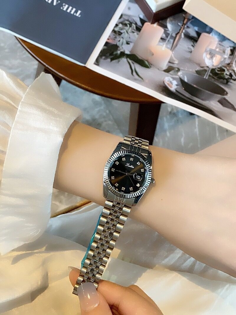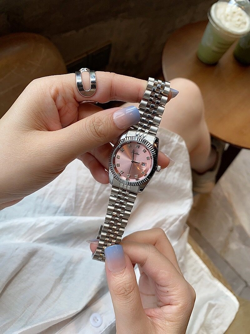 Color: gold shell white surface, gold shell green surface, gold shell gold surface, gold shell coffee surface, silver case pink surface, silver case black surface, white steel belt on white surface