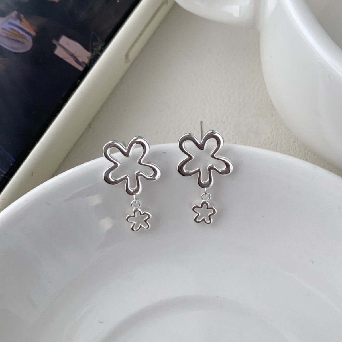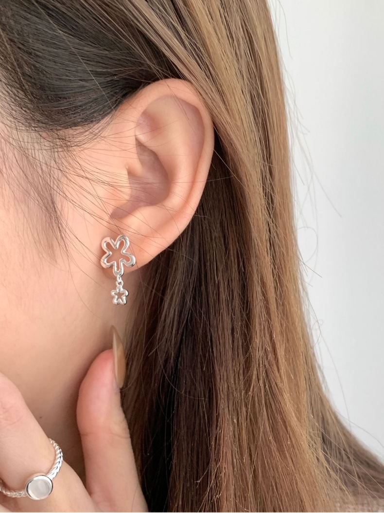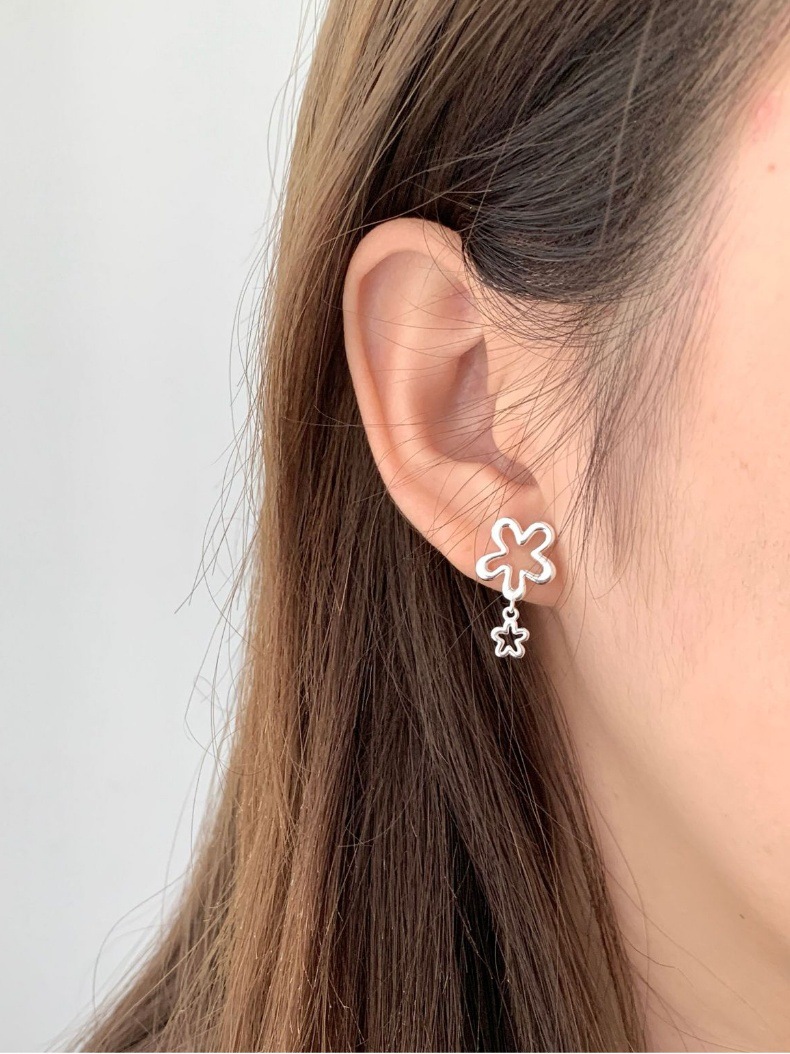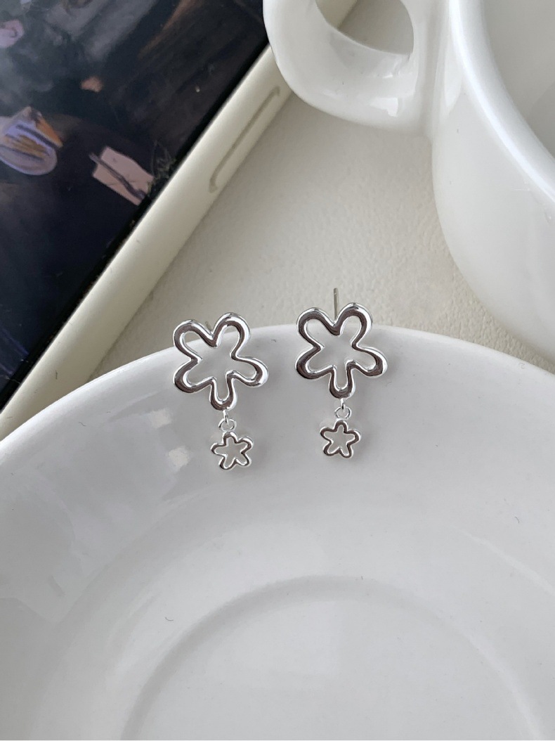 Womens Simple Hollow Flower Stud Earrings