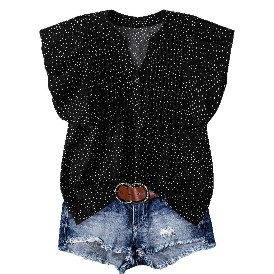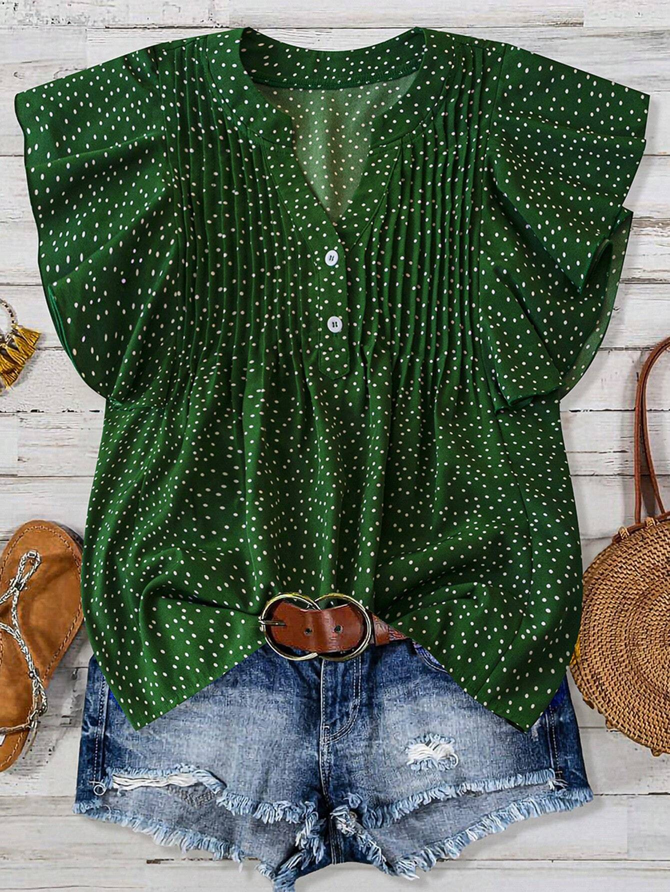 Women's Simple Print Princess Sleeve V-neck Top