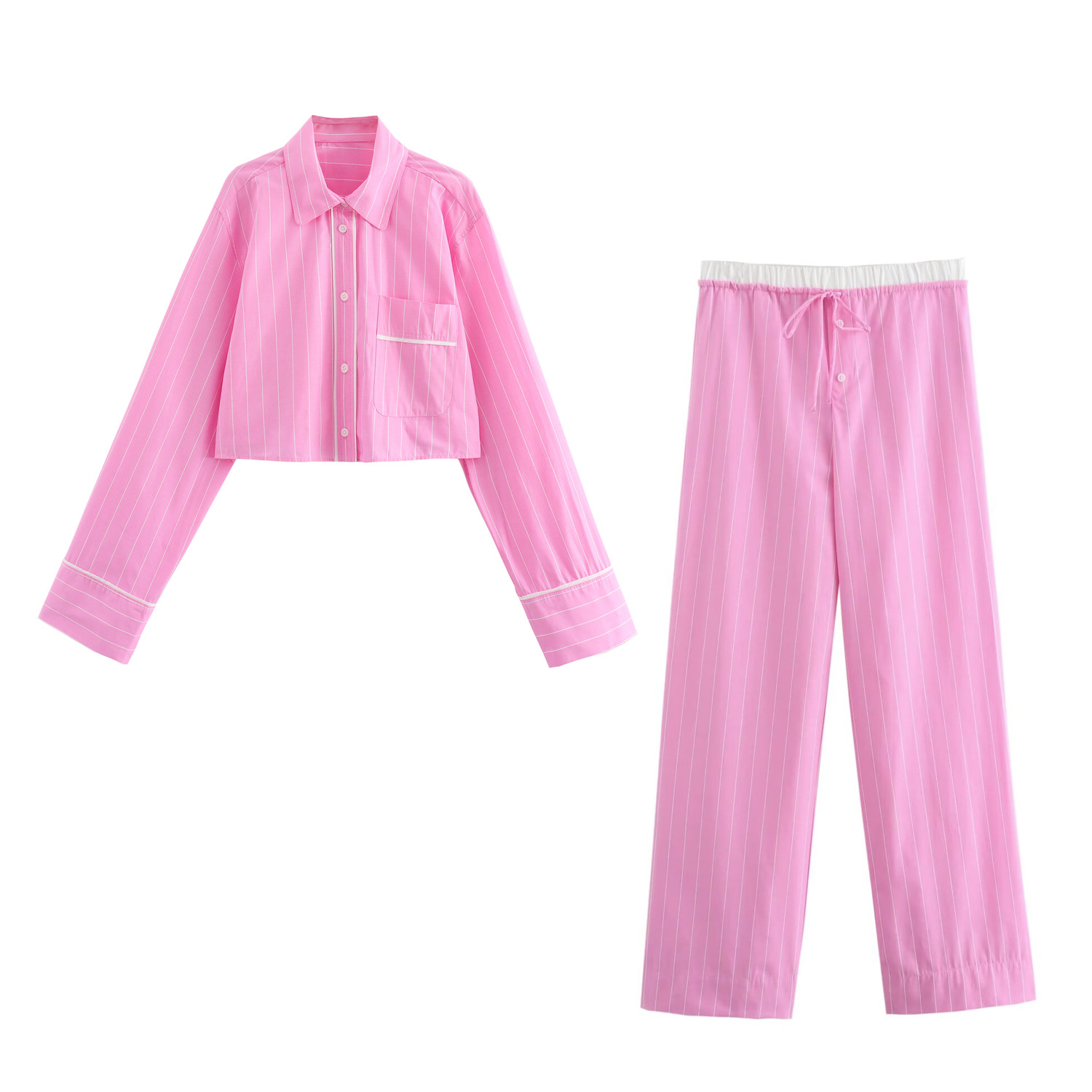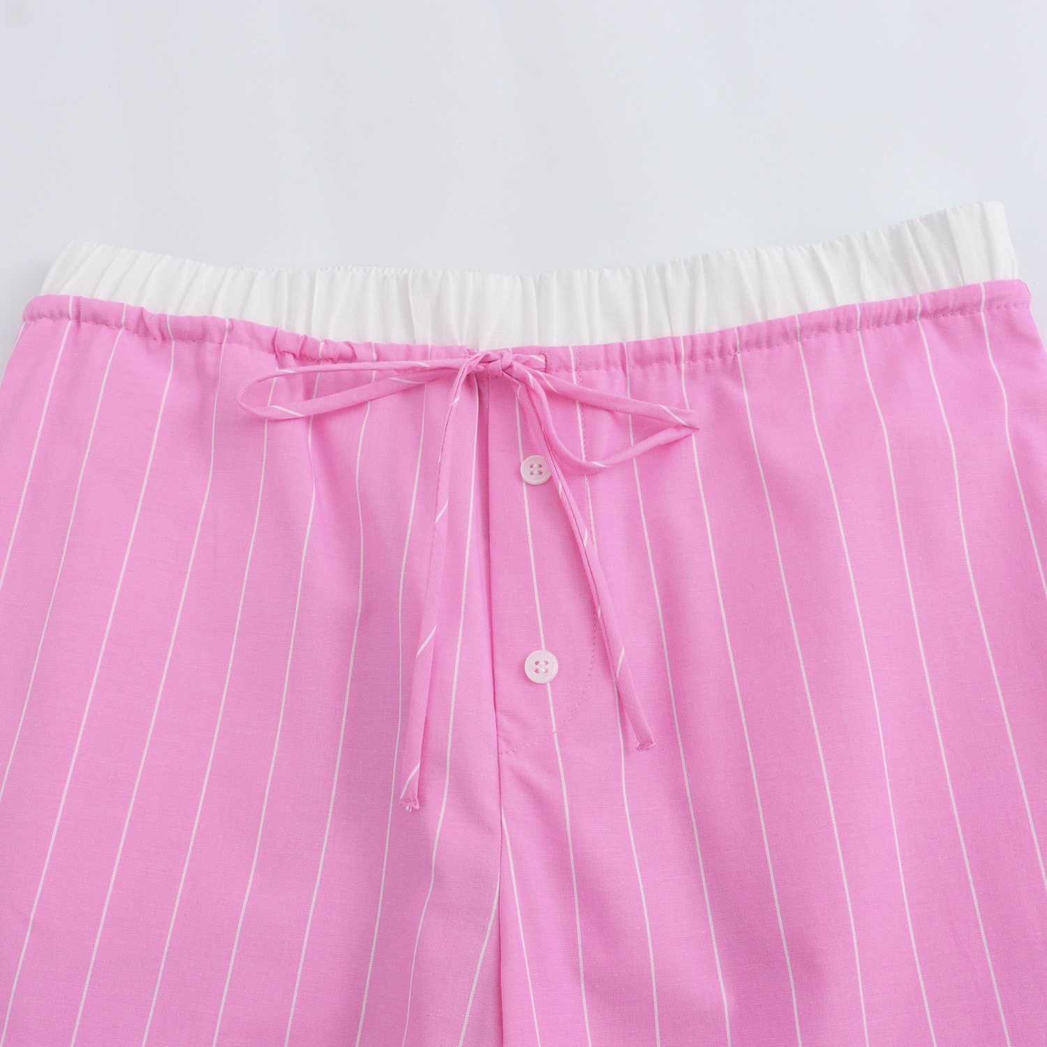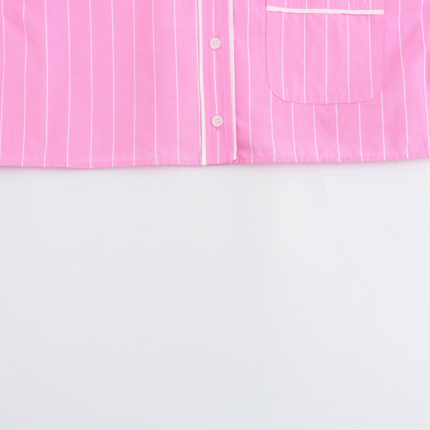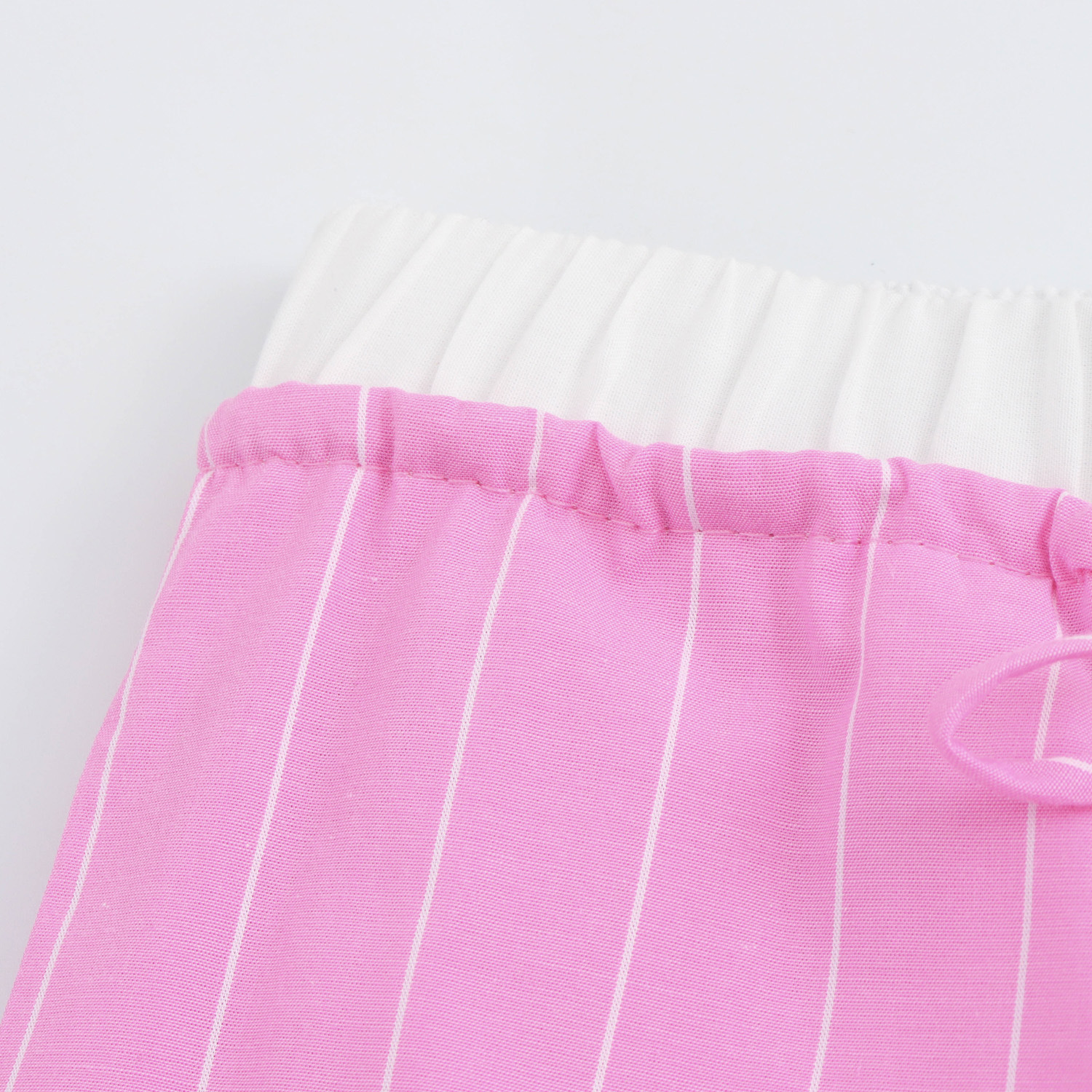 Color: striped shirt, pure pink shirt, striped pants, pure pink pants