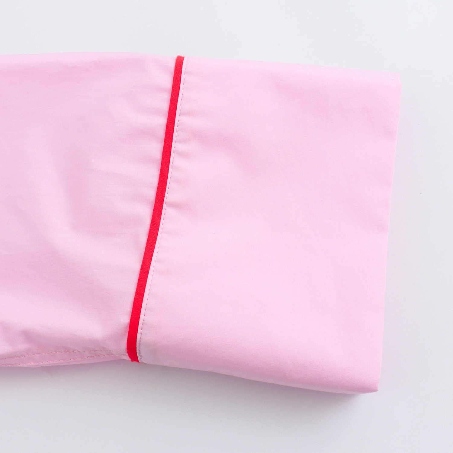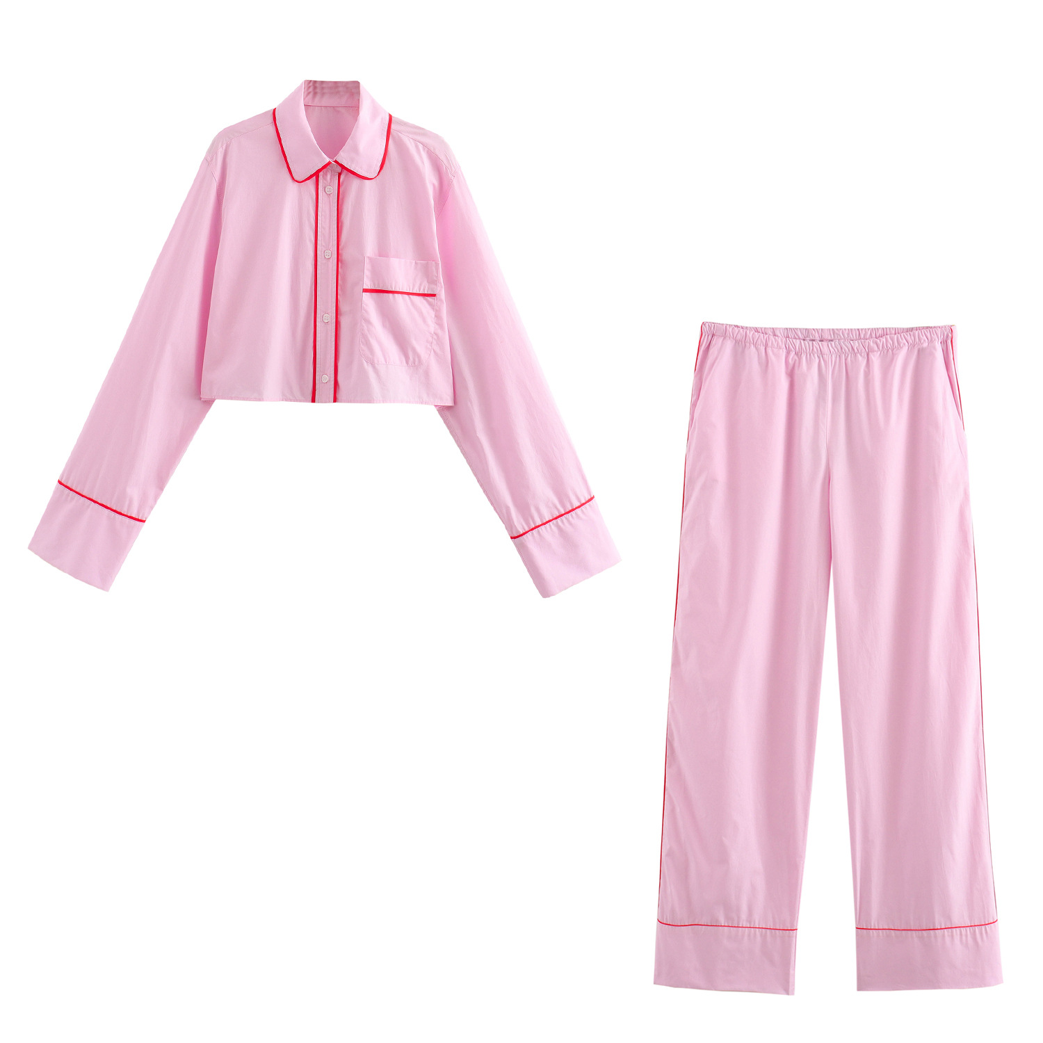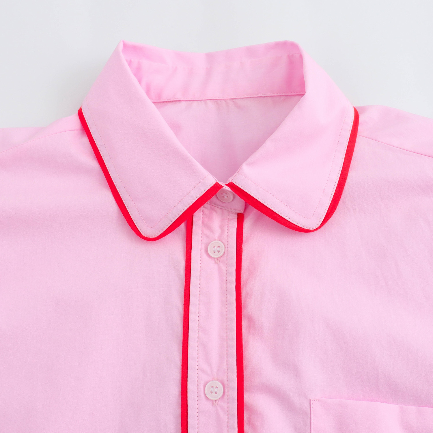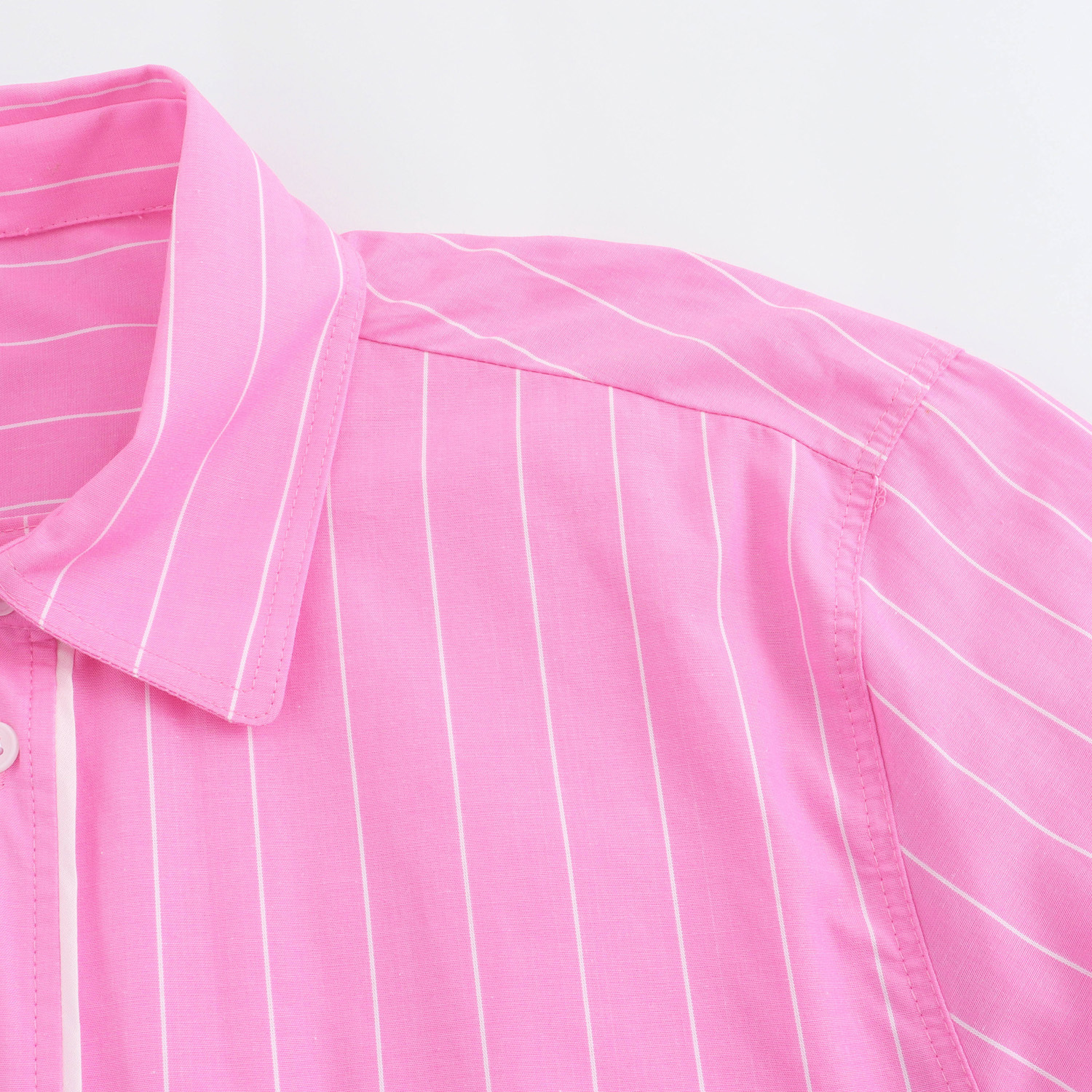 Color: striped shirt, pure pink shirt, striped pants, pure pink pants
