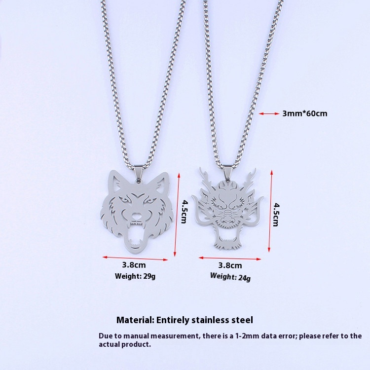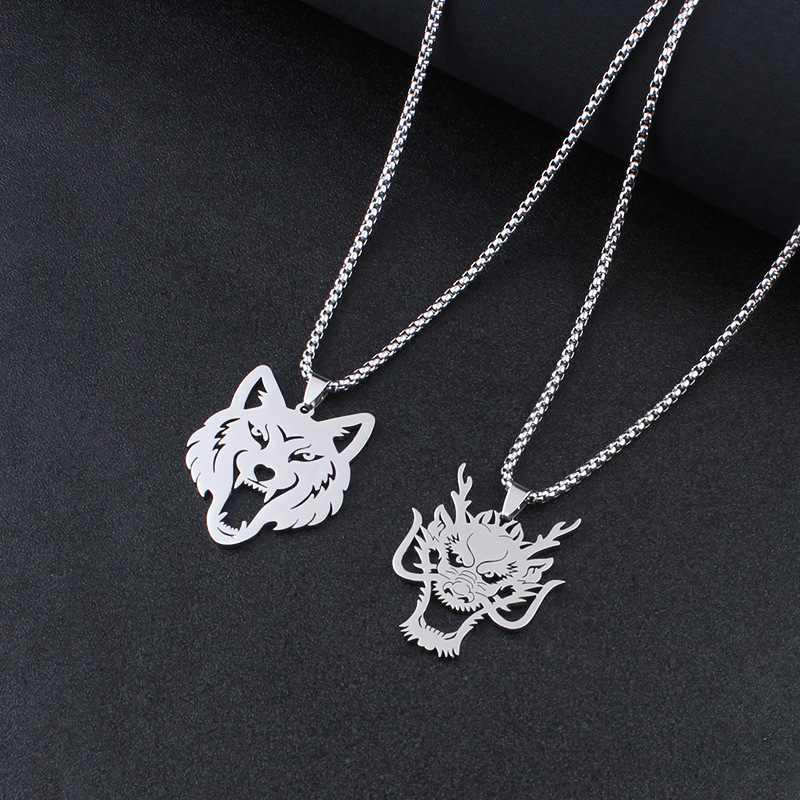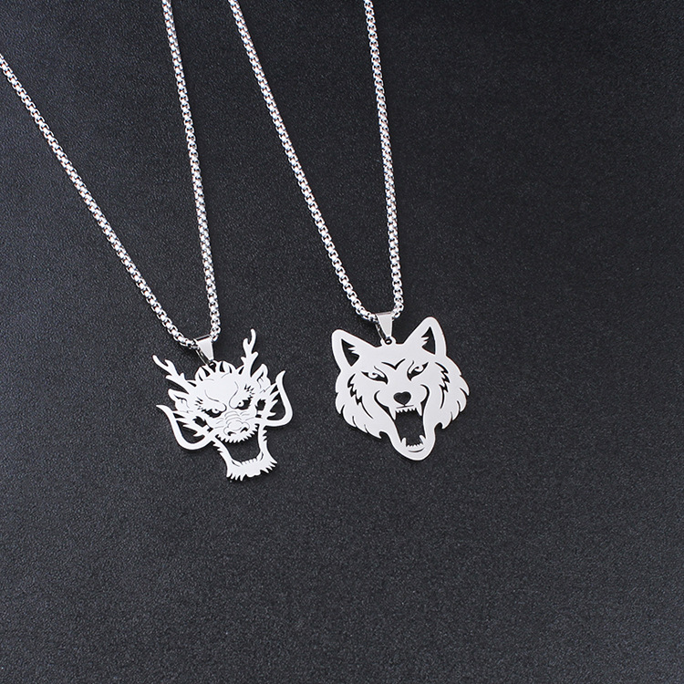 Color: dragon head pendant 60cm chain, wolf head pendant 60cm chain