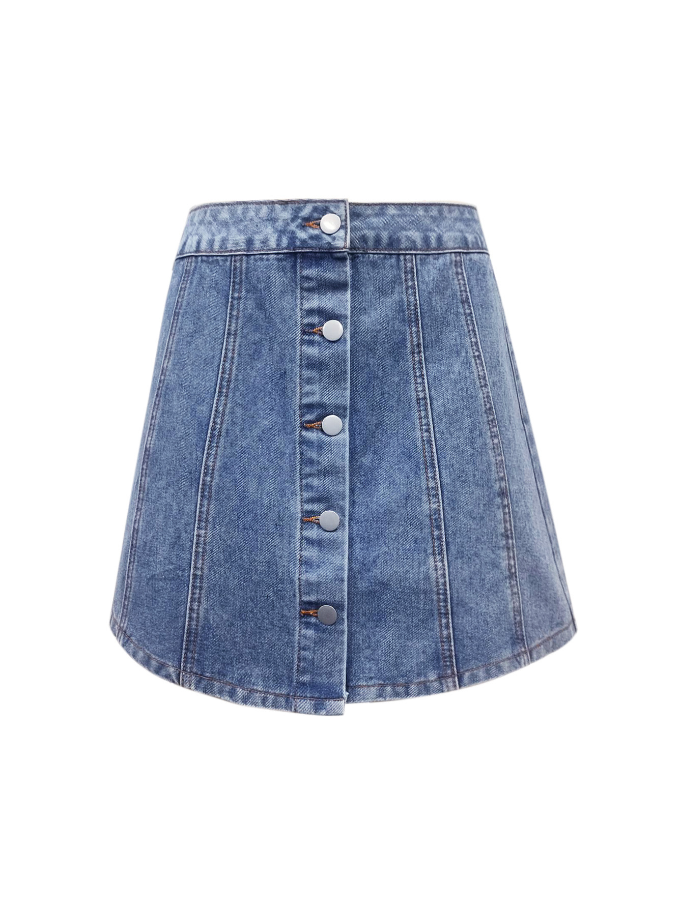 Womens Single-Breasted Defined-Waist Denim Skirt