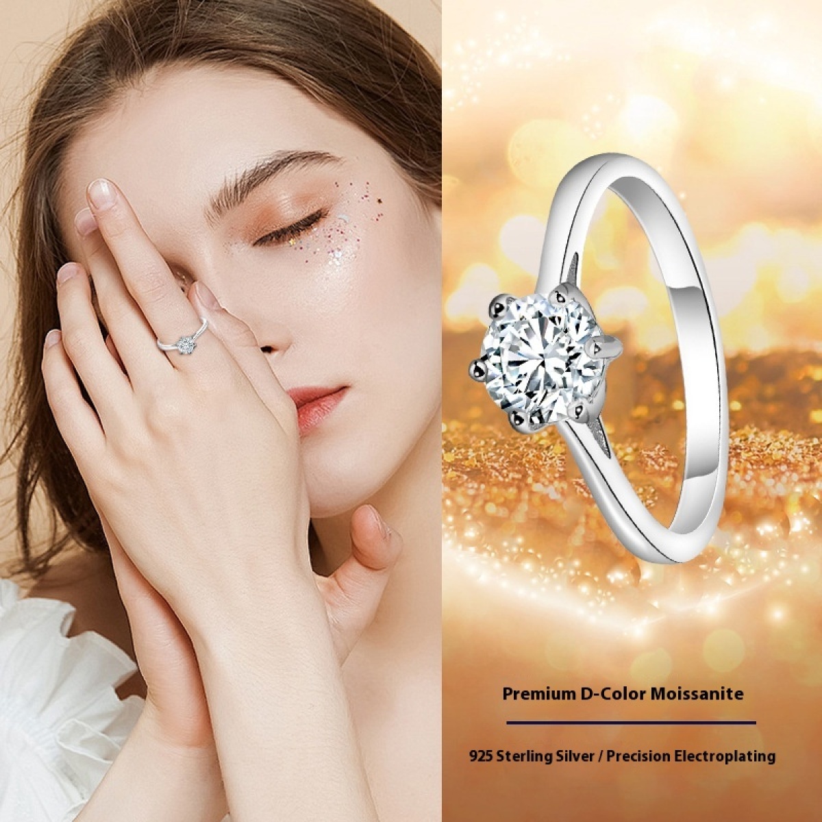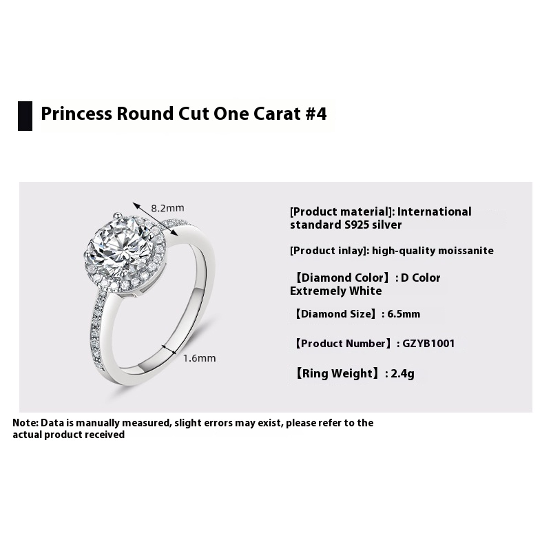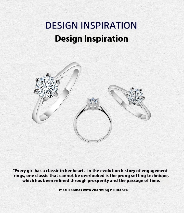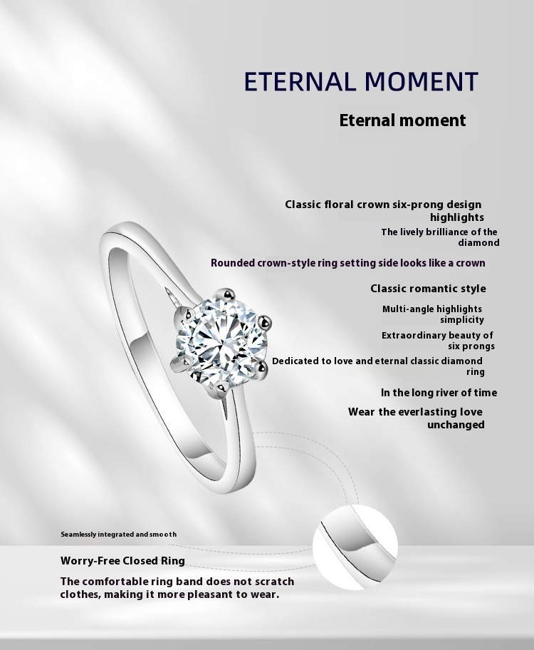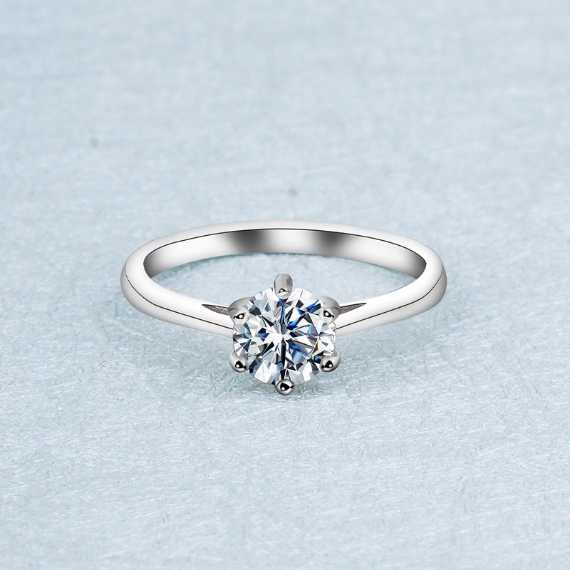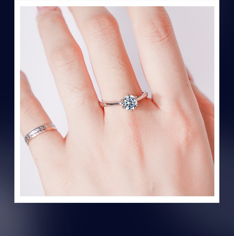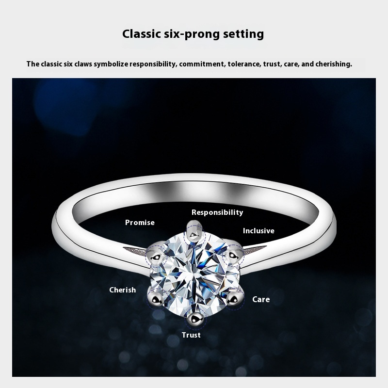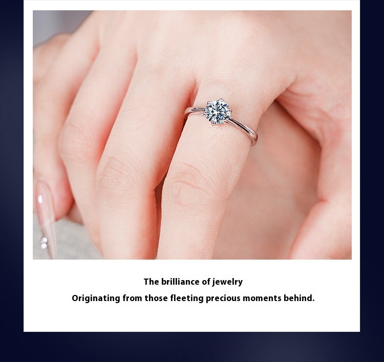 Women's Six-claw Moissanite Sterling Silver Ring Does Not Fade