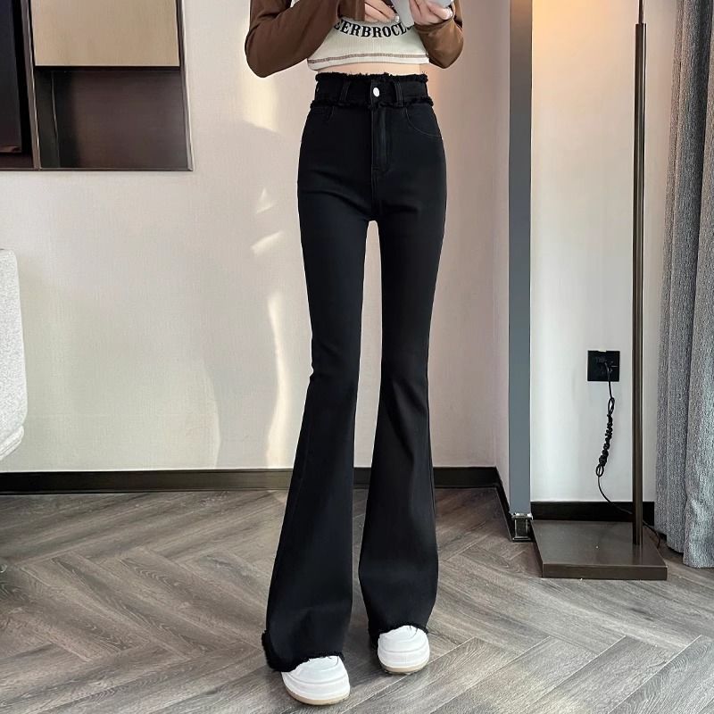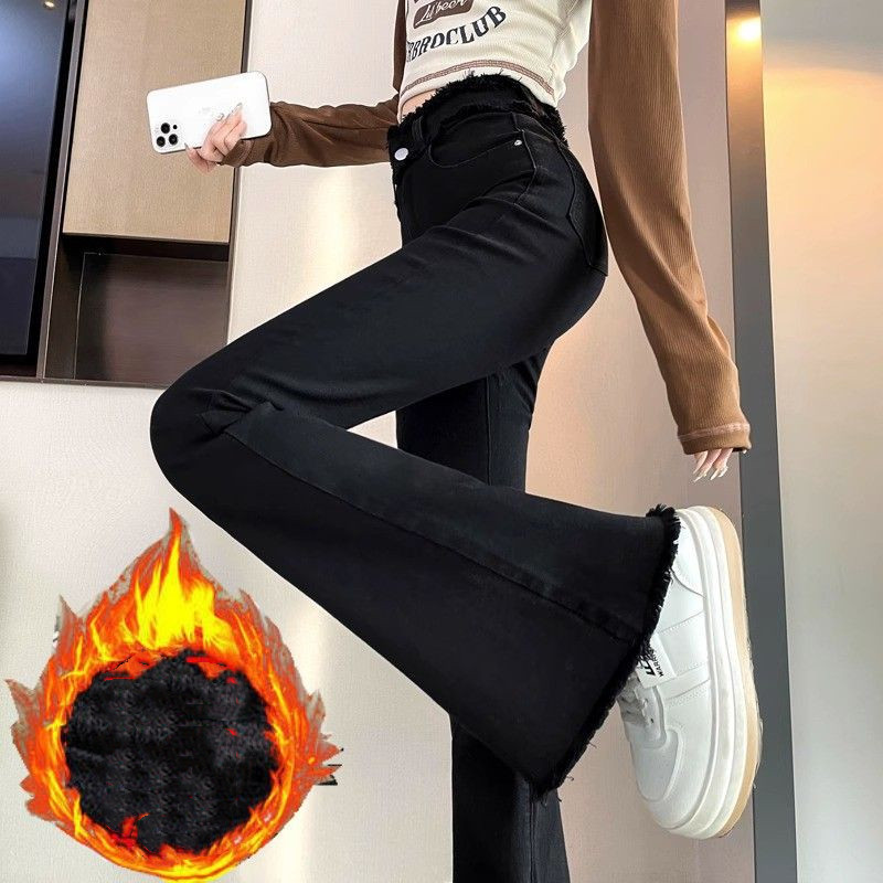 Women's Skinny Jeans Winter Fleece-lined Frayed Edges