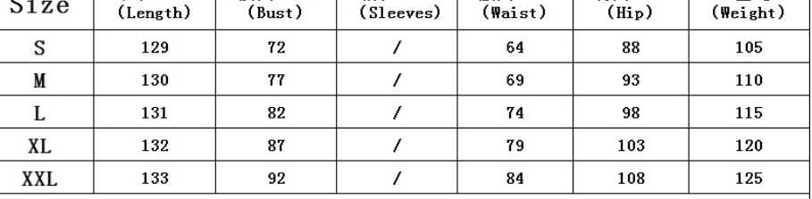 Size:S,M,L,XL,XXL unit: cm