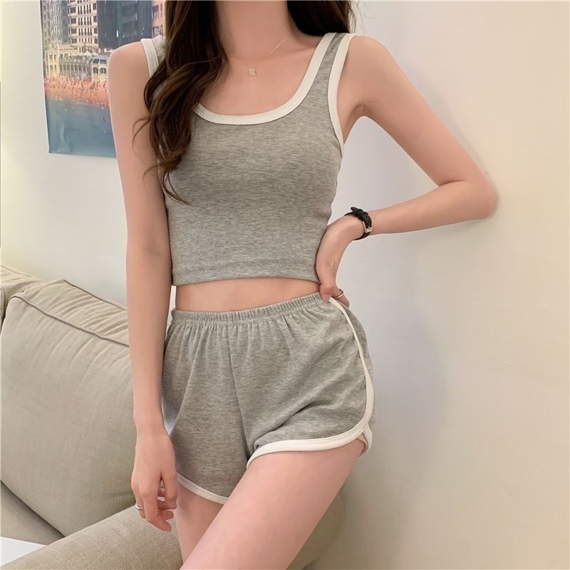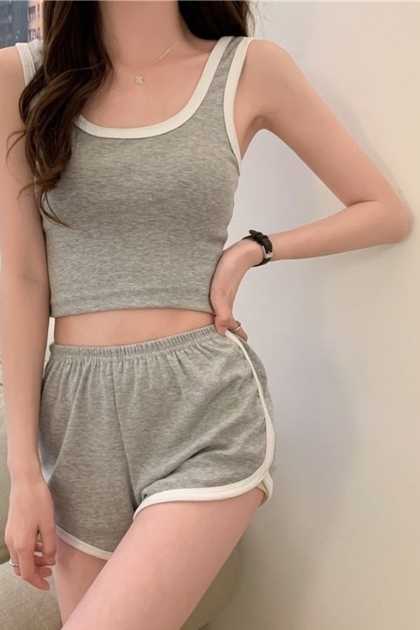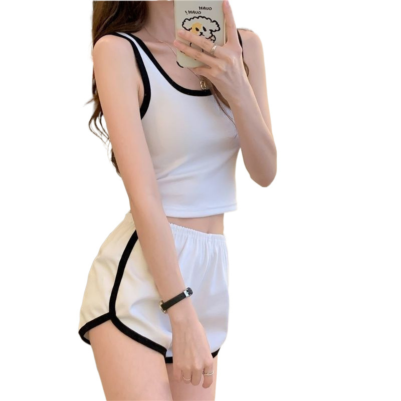Color: [Single-strap Capri Pants + Tank Top] Black Set, [Single-strap Capri Pants + Tank Top] White Set , [Single-strap Capri Pants + Tank Top] Gray Set