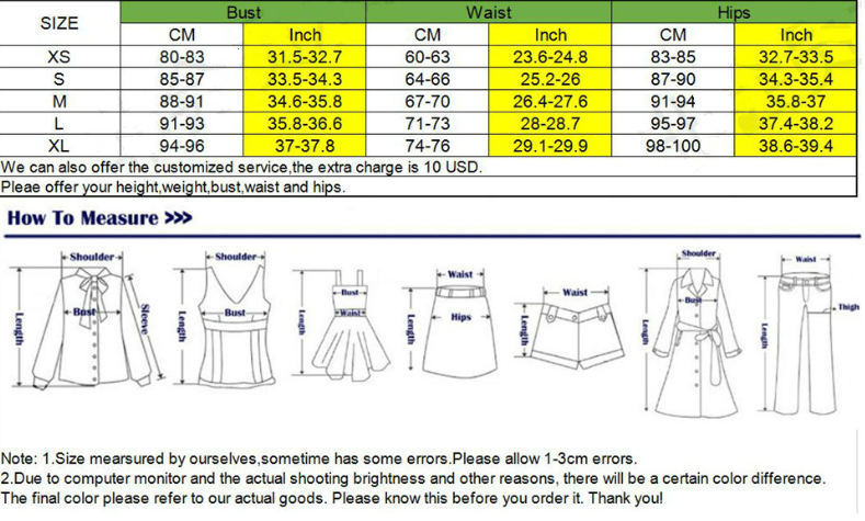 2. Please check the size chart carefully before you buy the item, if you don't know how to choose size, please contact our customer service.