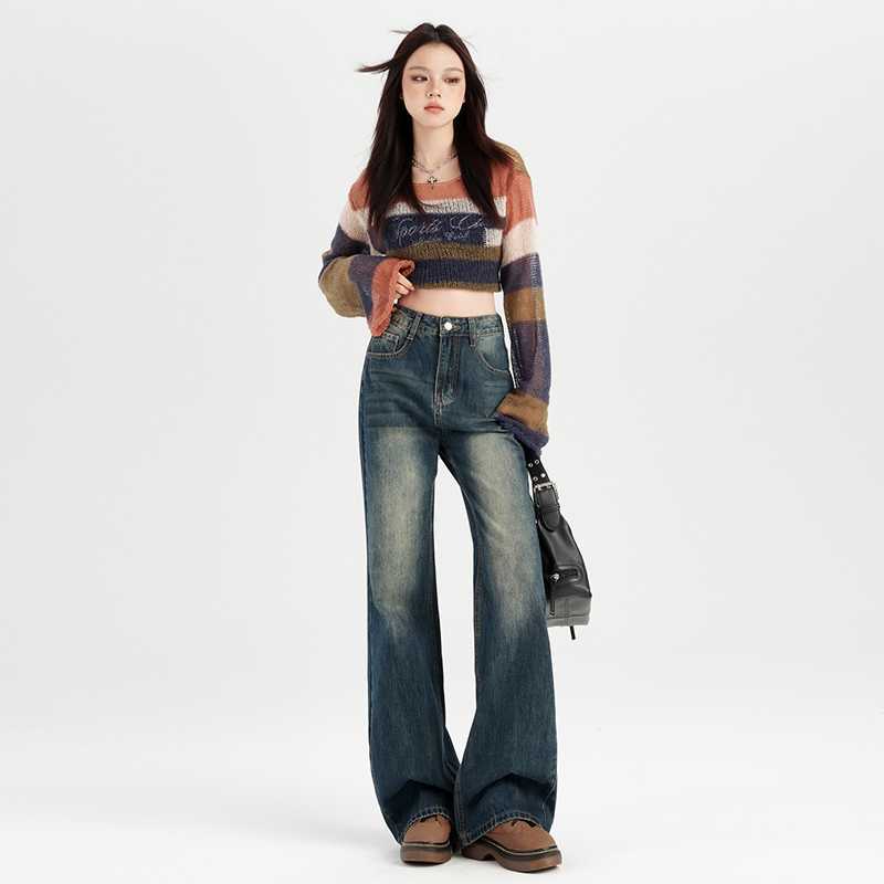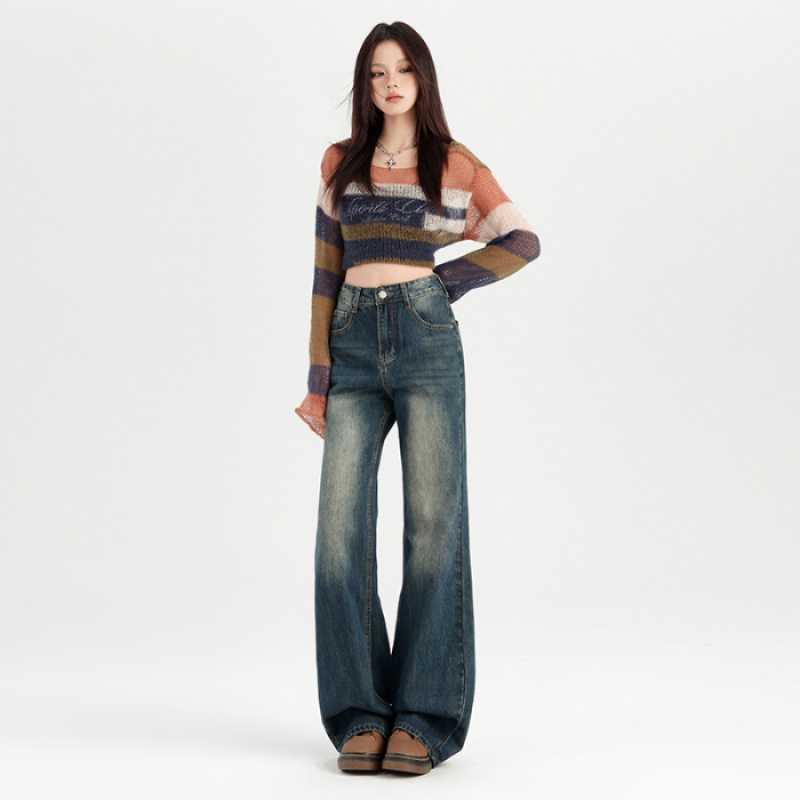 Color: retro blue cropped trousers, retro blue trousers, retro blue lengthened