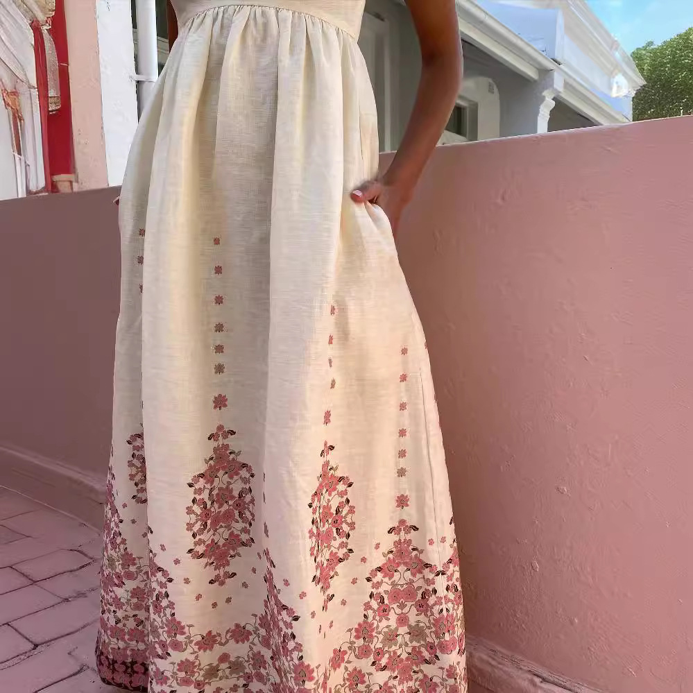 Women's Sling Fashion Printing Cotton And Linen Style Dress
