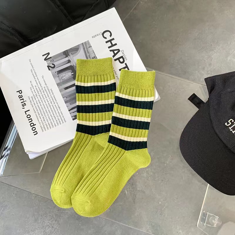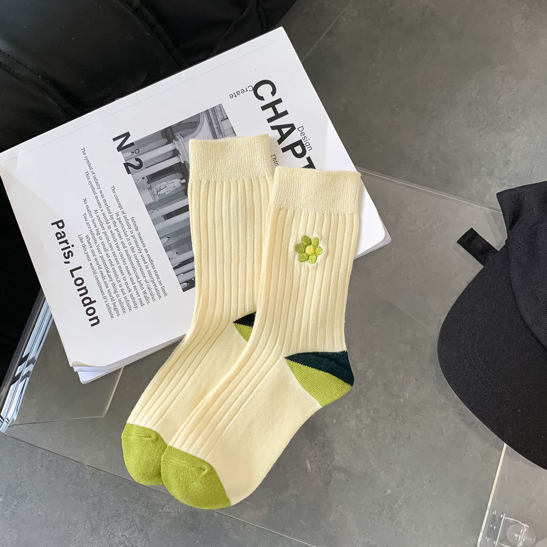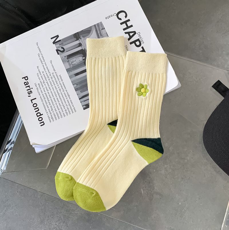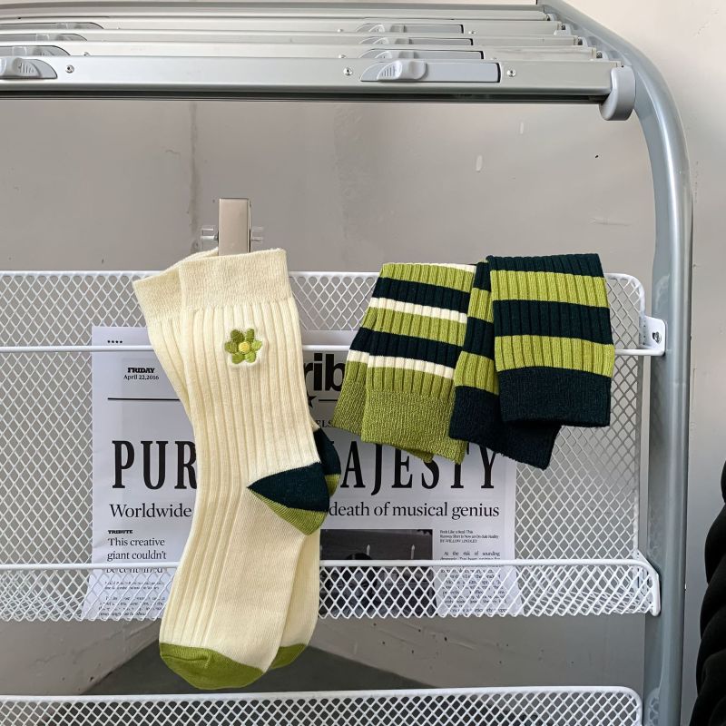 Color: small flower embroidery, bright green stripes, dark green stripes