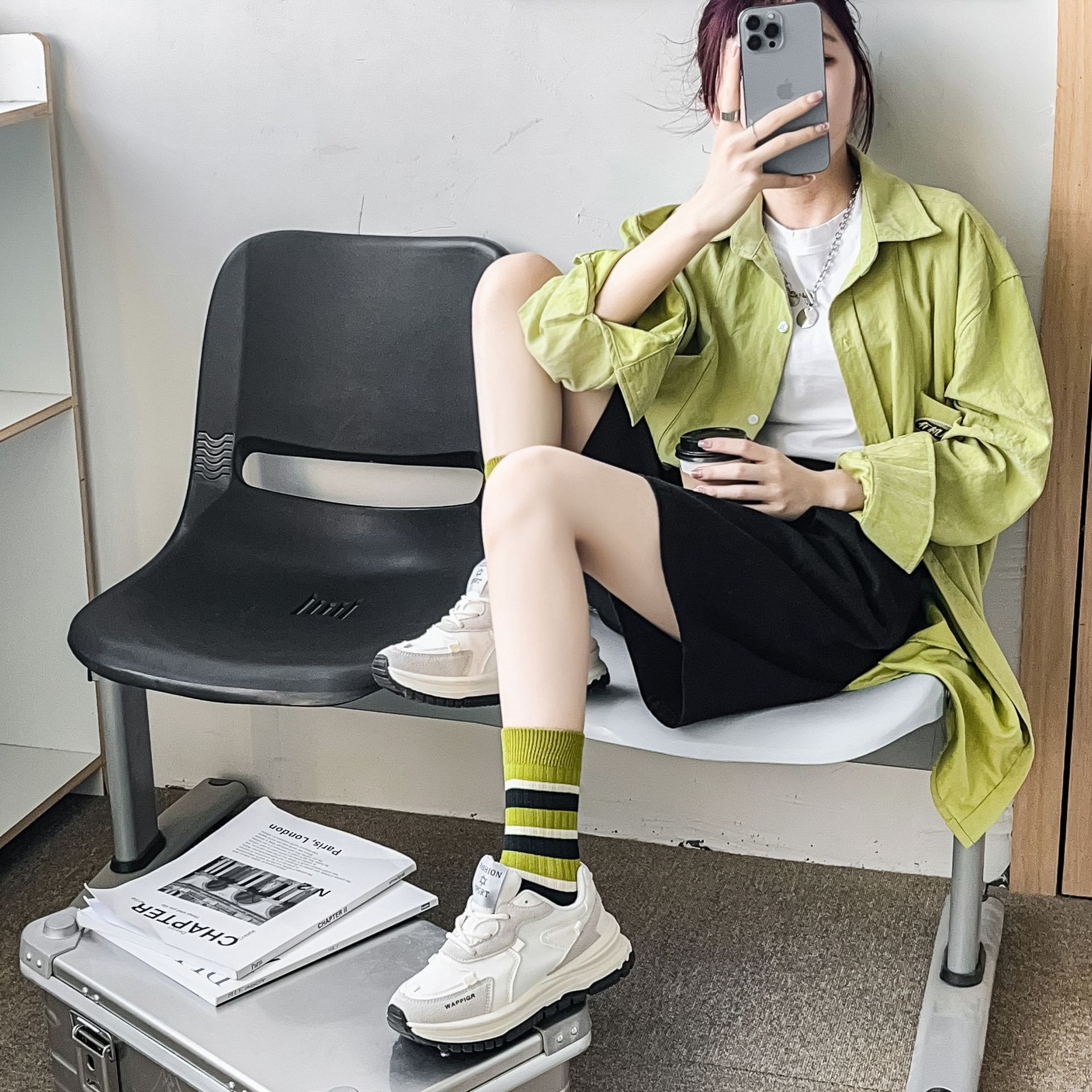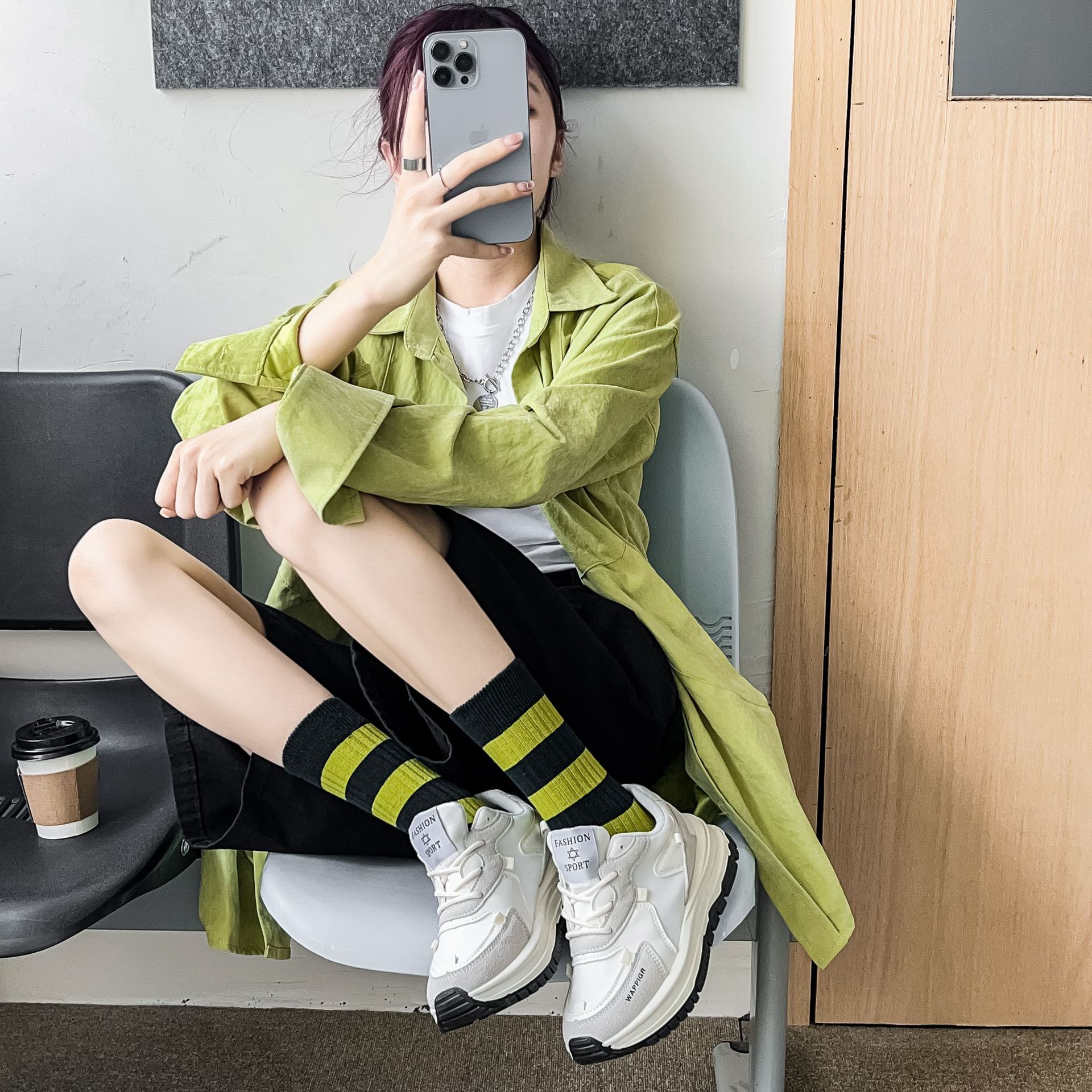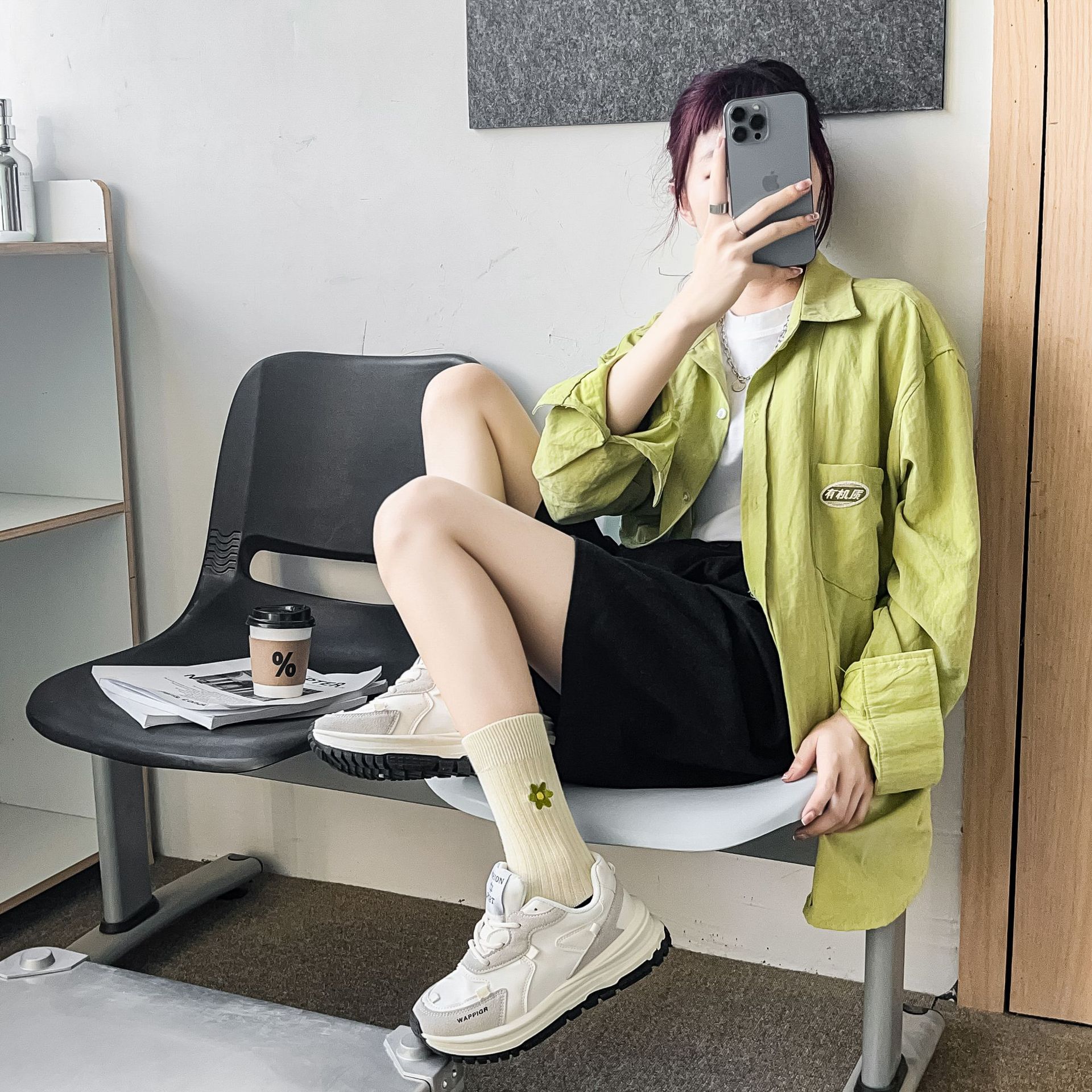 Color: small flower embroidery, bright green stripes, dark green stripes
