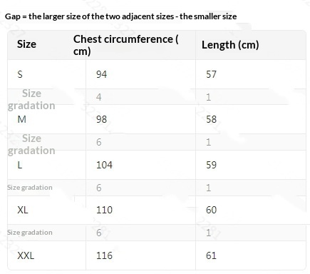 Sizes: S, M, L, XL, XXL