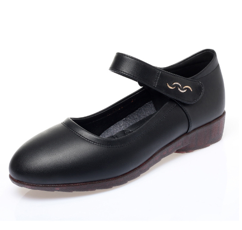 Trendy features: Shallow toe box, wedge heel, buckle