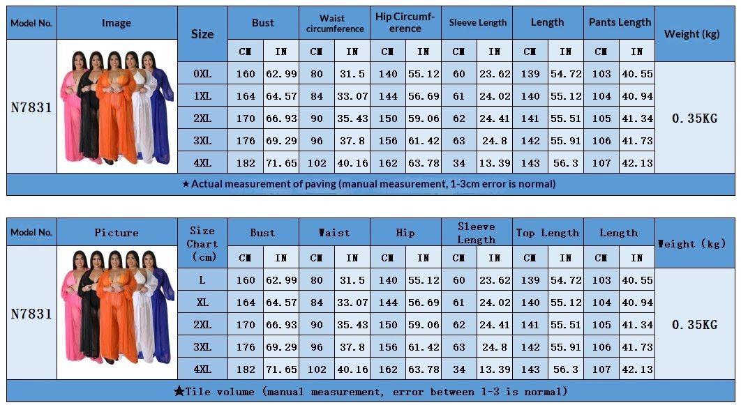 Sizes: 0XL, 1XL, 2XL, 3XL, 4XL