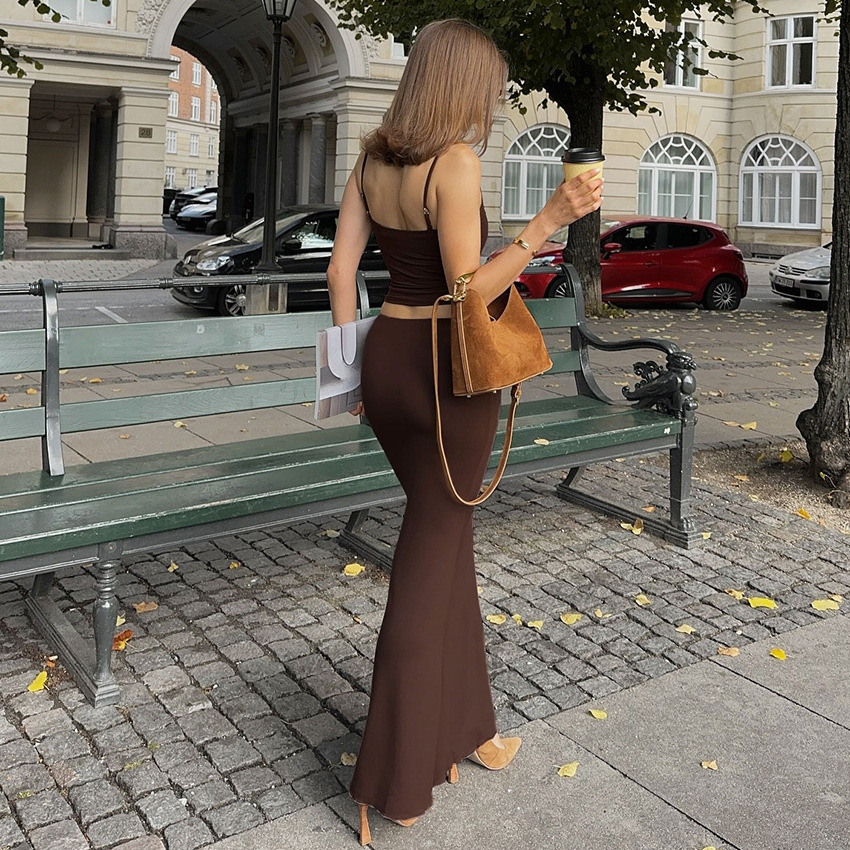 Womens Solid-Color Camisole And Sheath Skirt Set