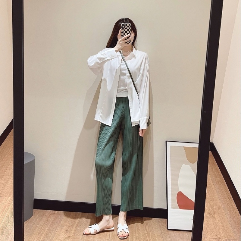 Women's Solid Color Casual Pleated Slim-fit Wide-leg Pants