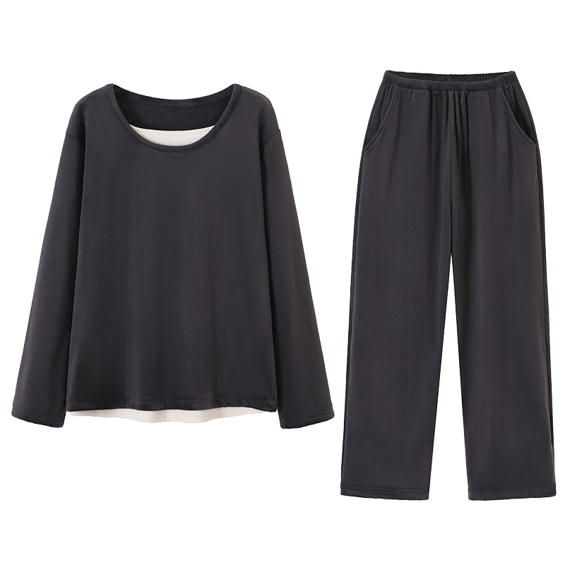 Womens Solid-Color Casual Plus-Size Loose Pajama Set