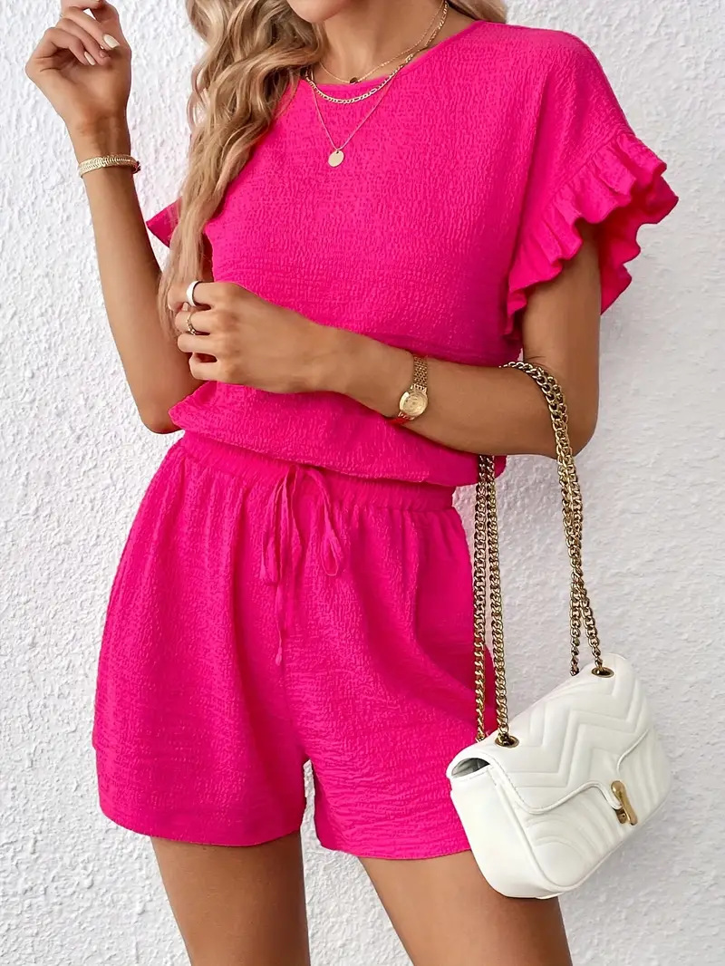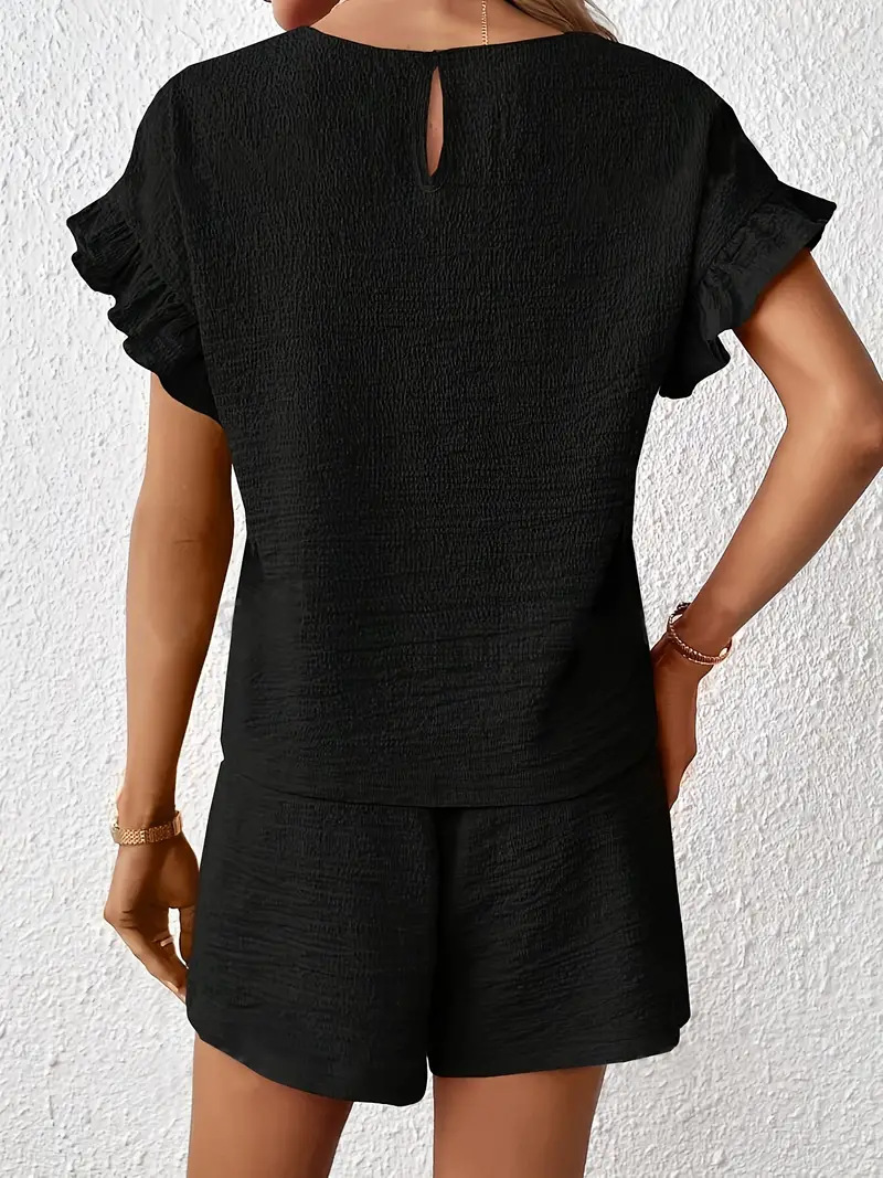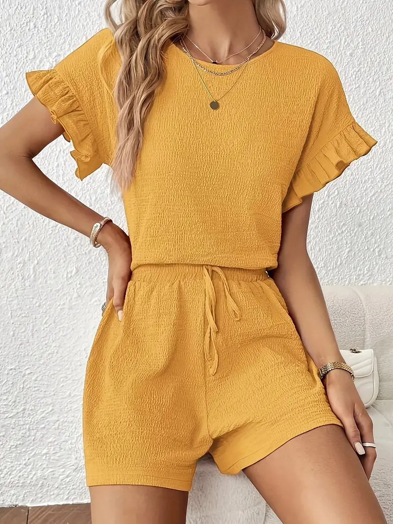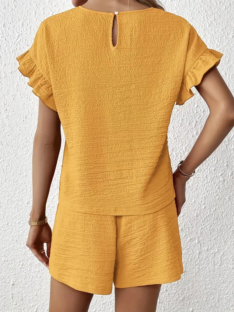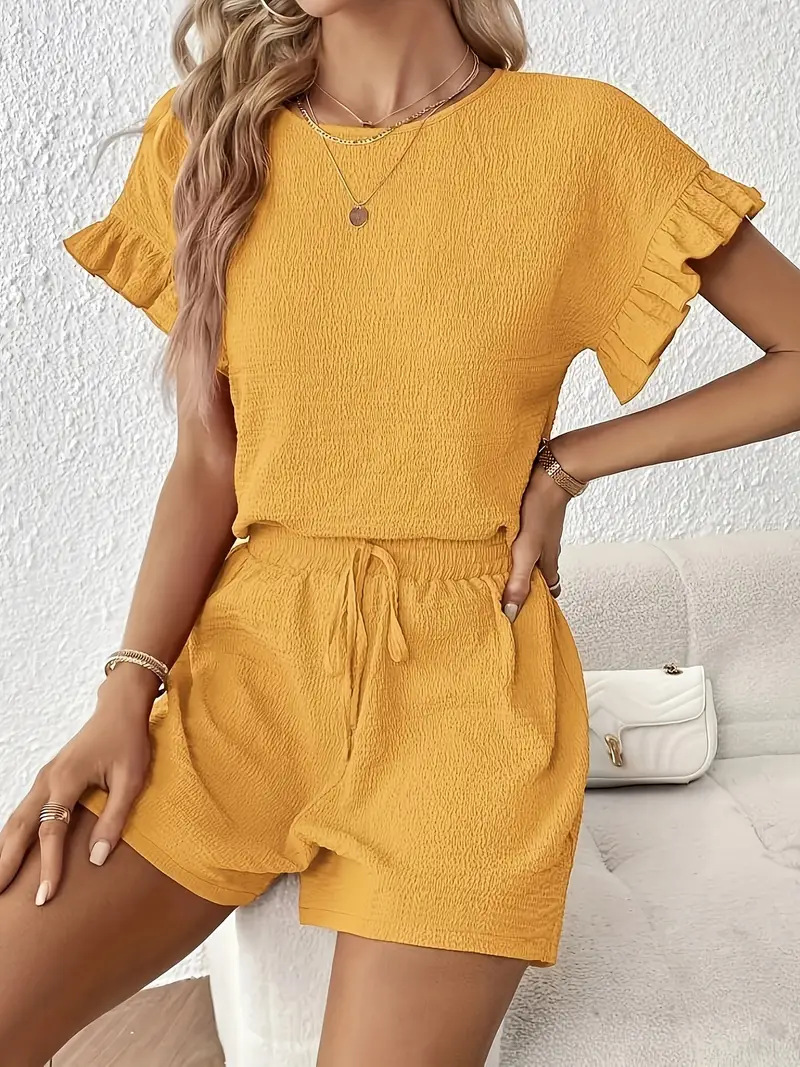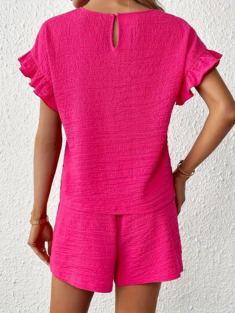 Women's Solid-Color Casual Two-Piece Set Top Shorts