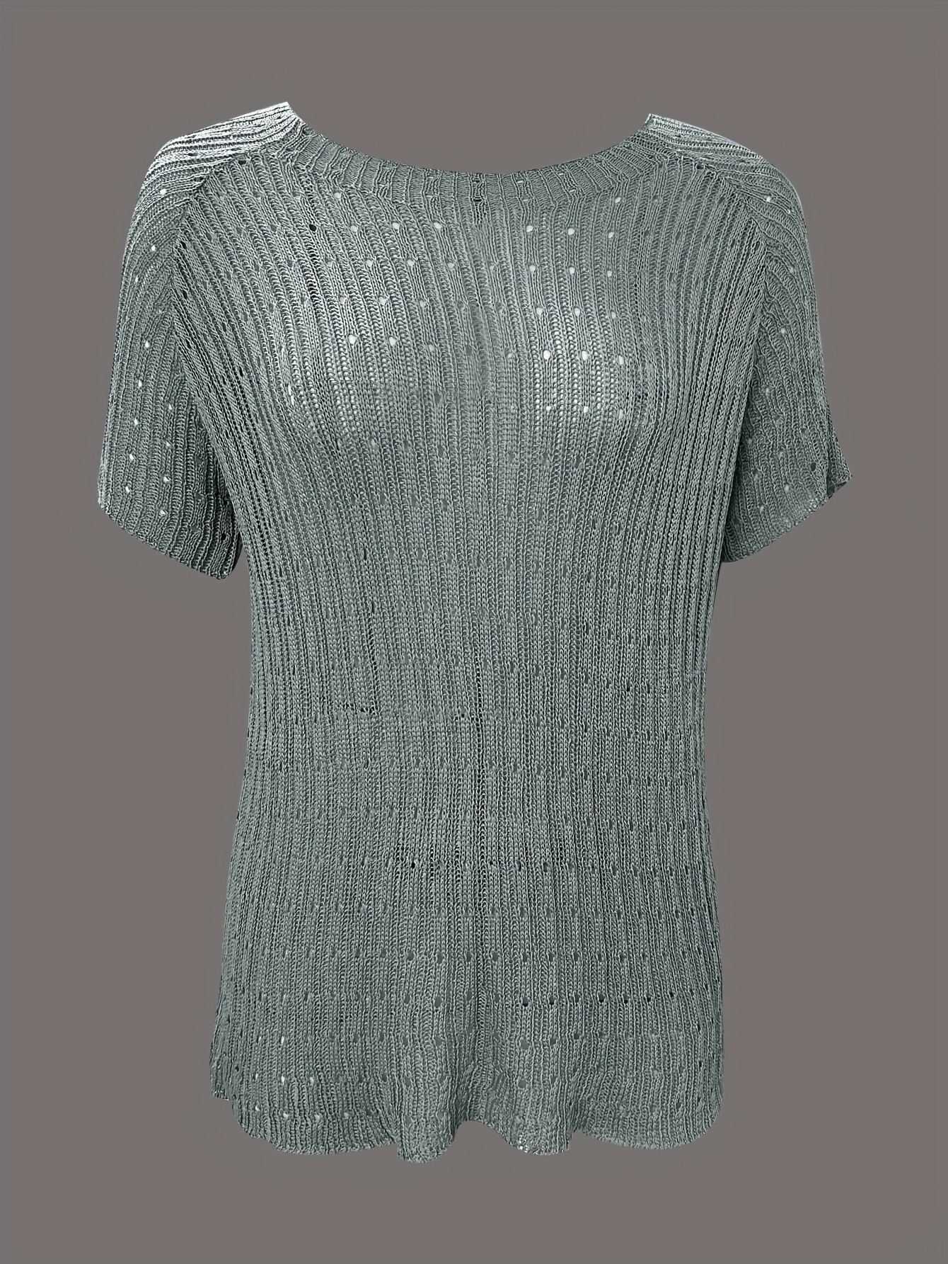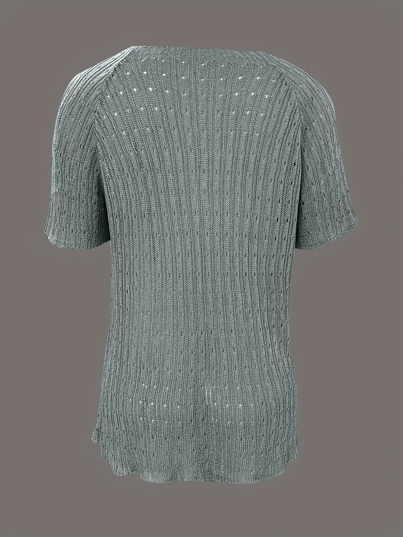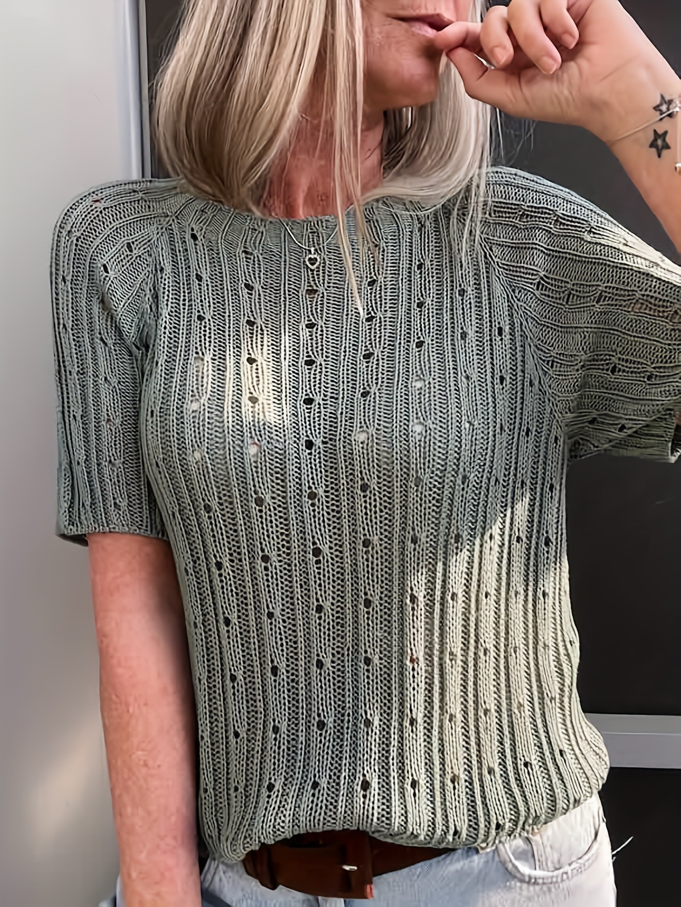 Women's Solid-color Crew-neck Hollow-out Mesh Knit Short-sleeve