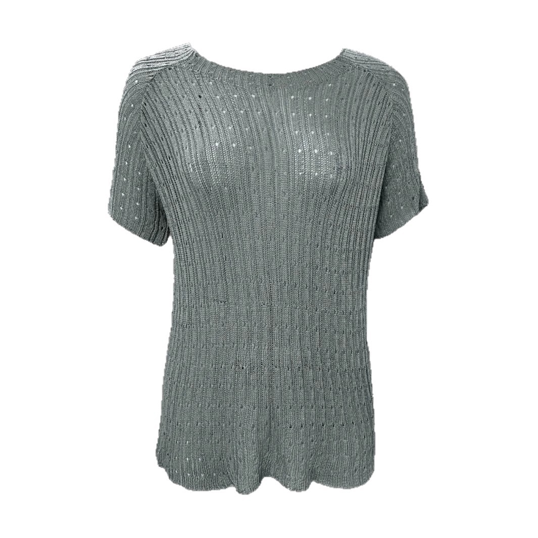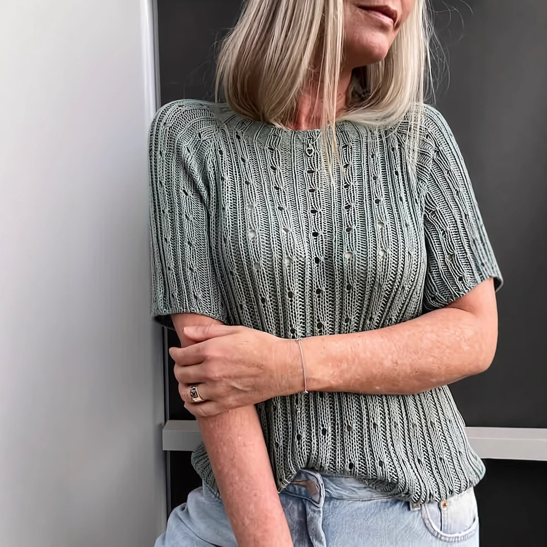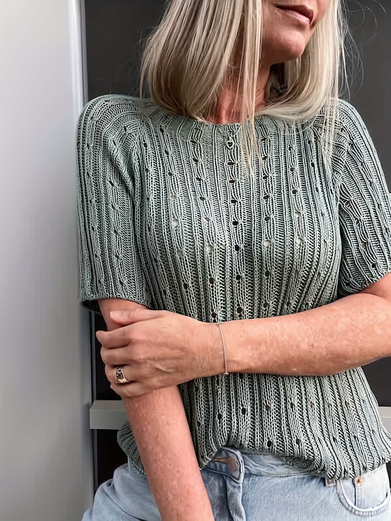 Women's Solid-color Crew-neck Hollow-out Mesh Knit Short-sleeve