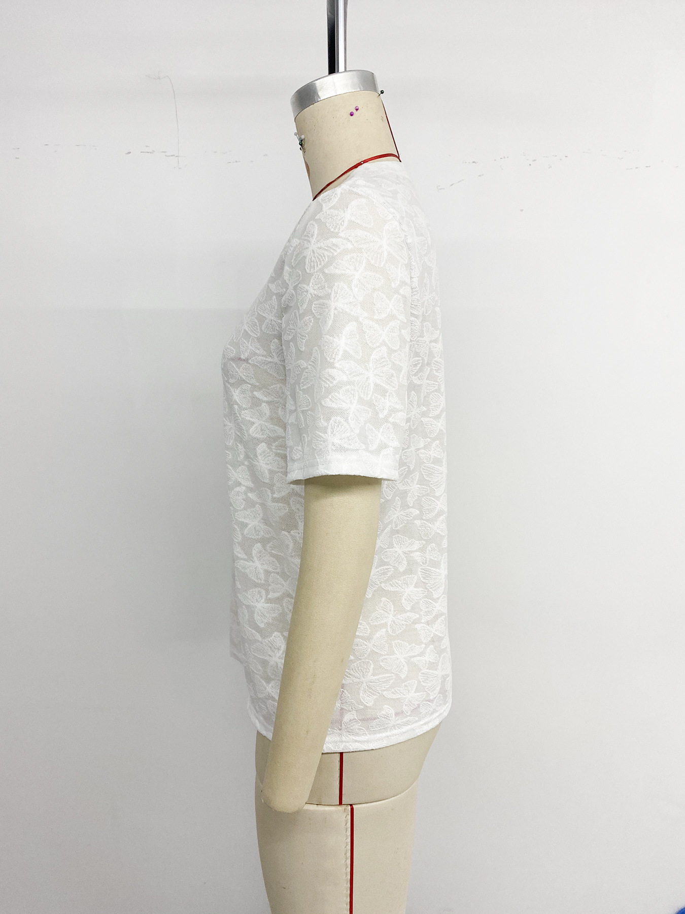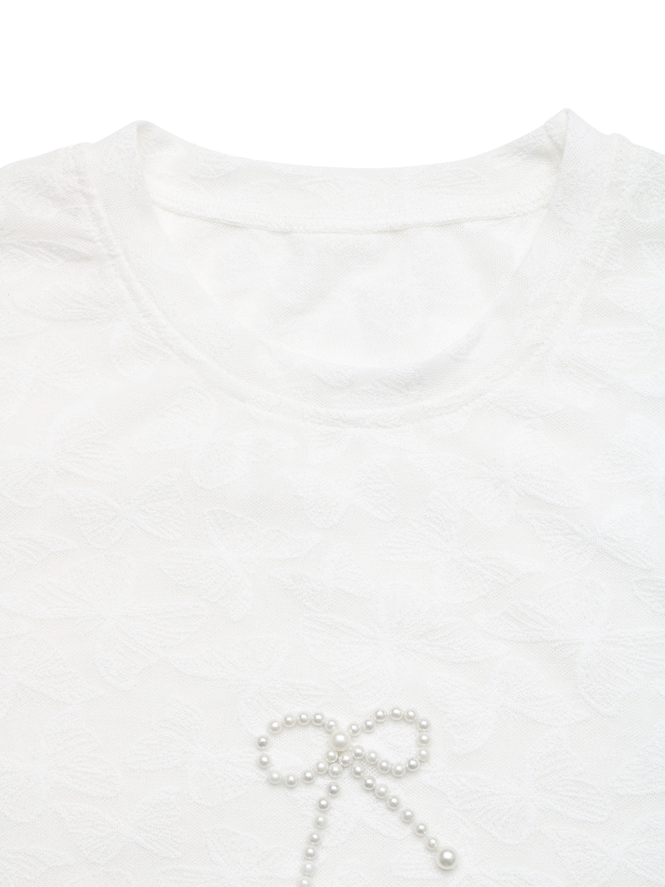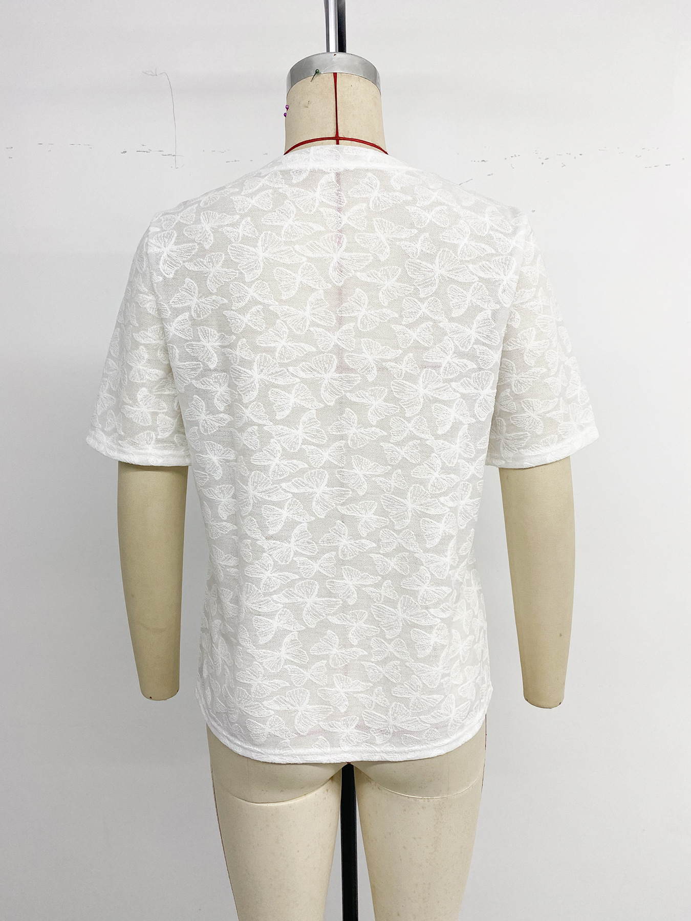 Womens Solid-Color Crew-Neck T-Shirt With Bow Embroidery