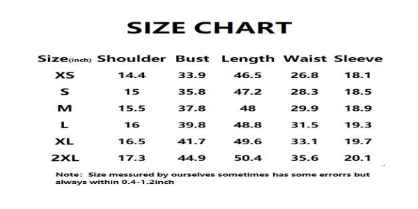 Sizes: XS, S, M, L, XL, XXL