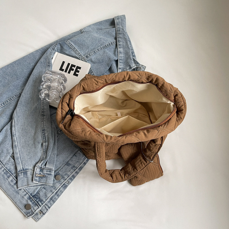 Women's Solid Color Diamond Plaid Shoulder Handbag