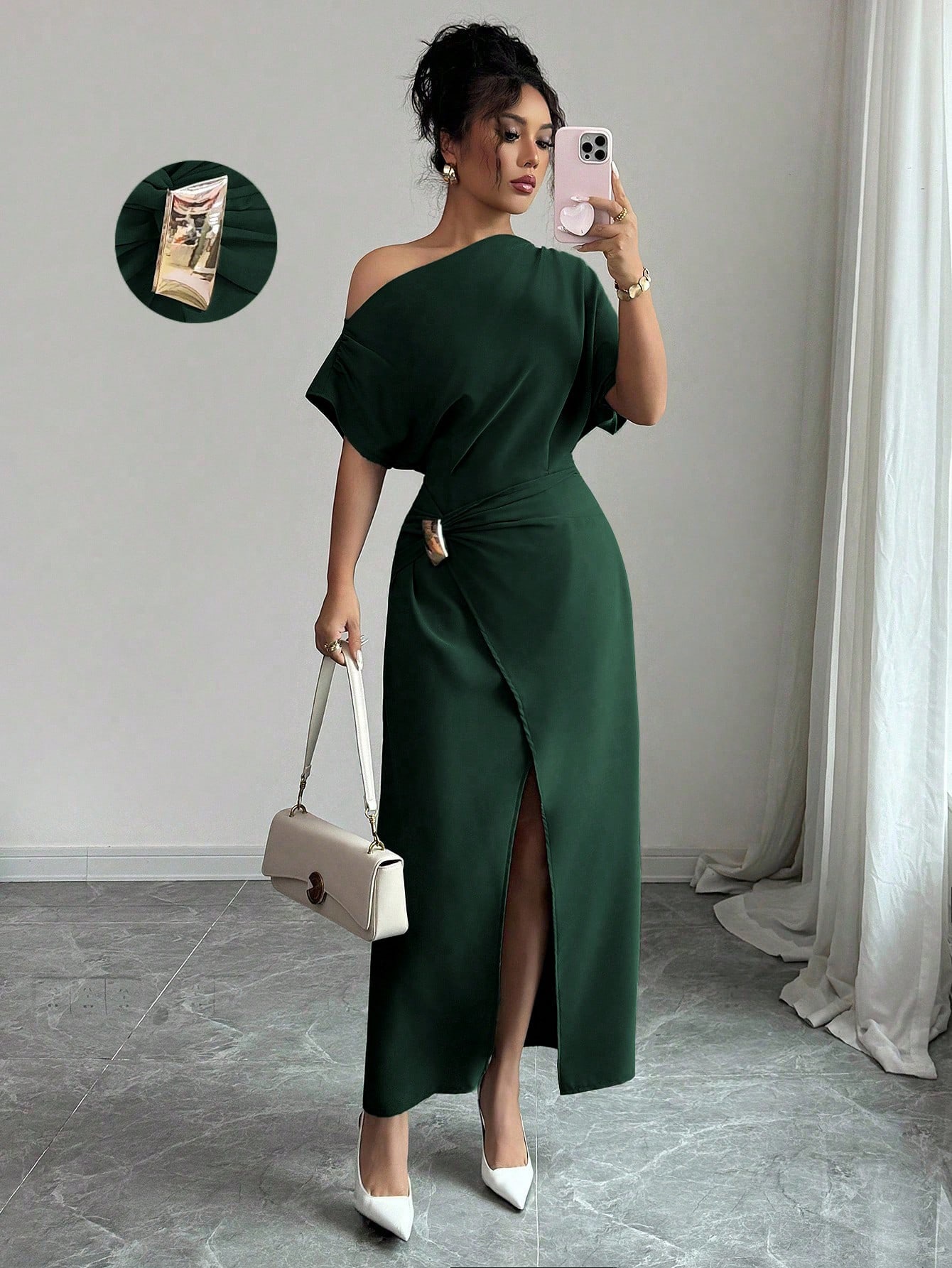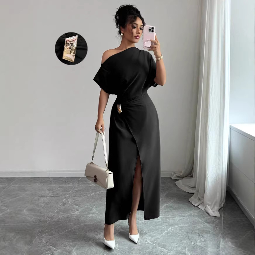 Trendy Elements: Solid Color, Side Slit, Off-Shoulder