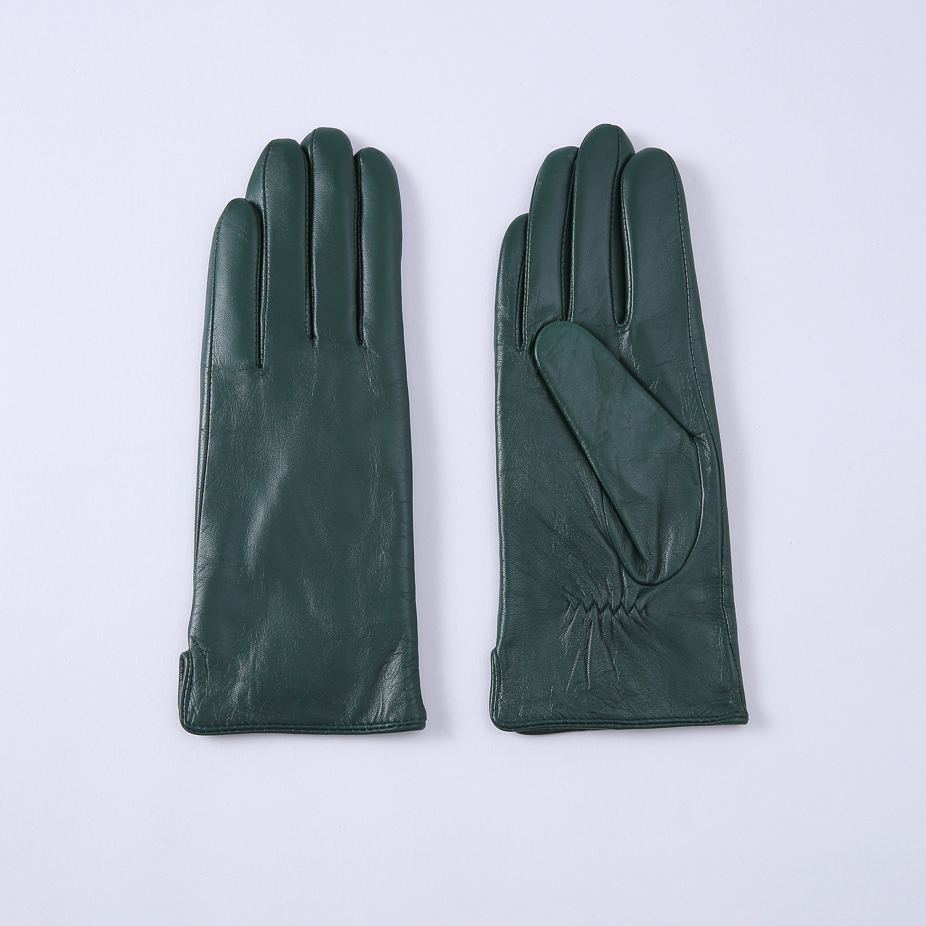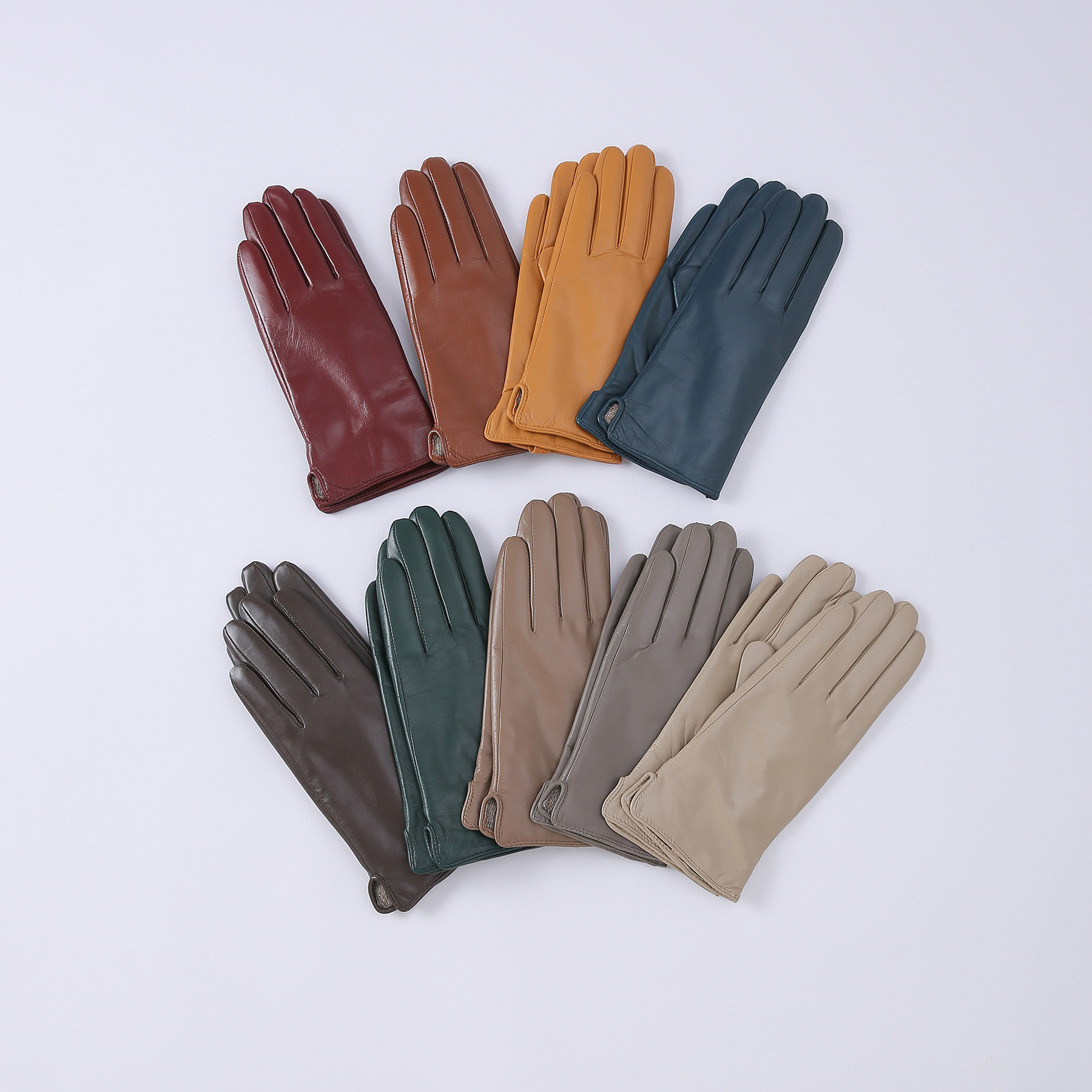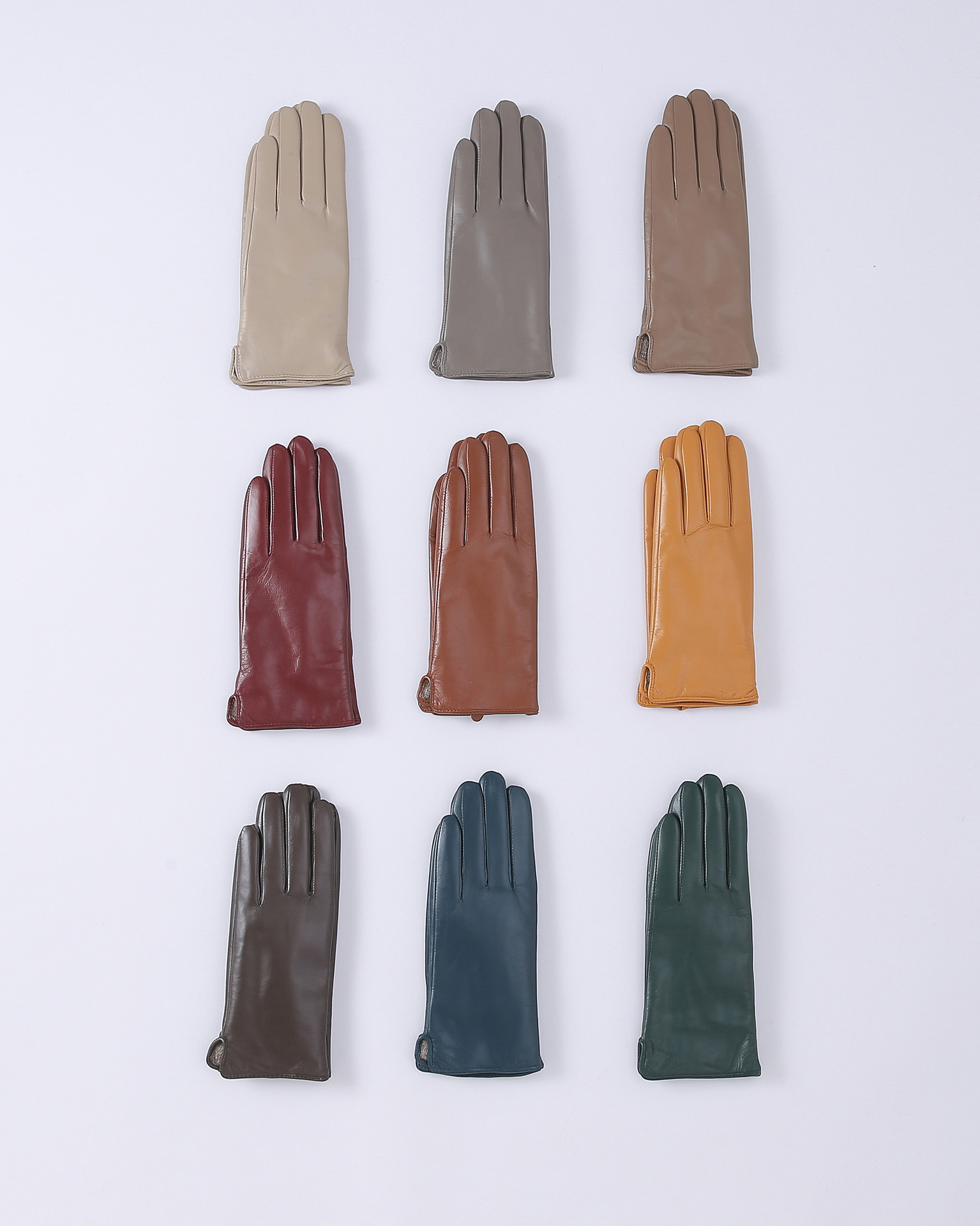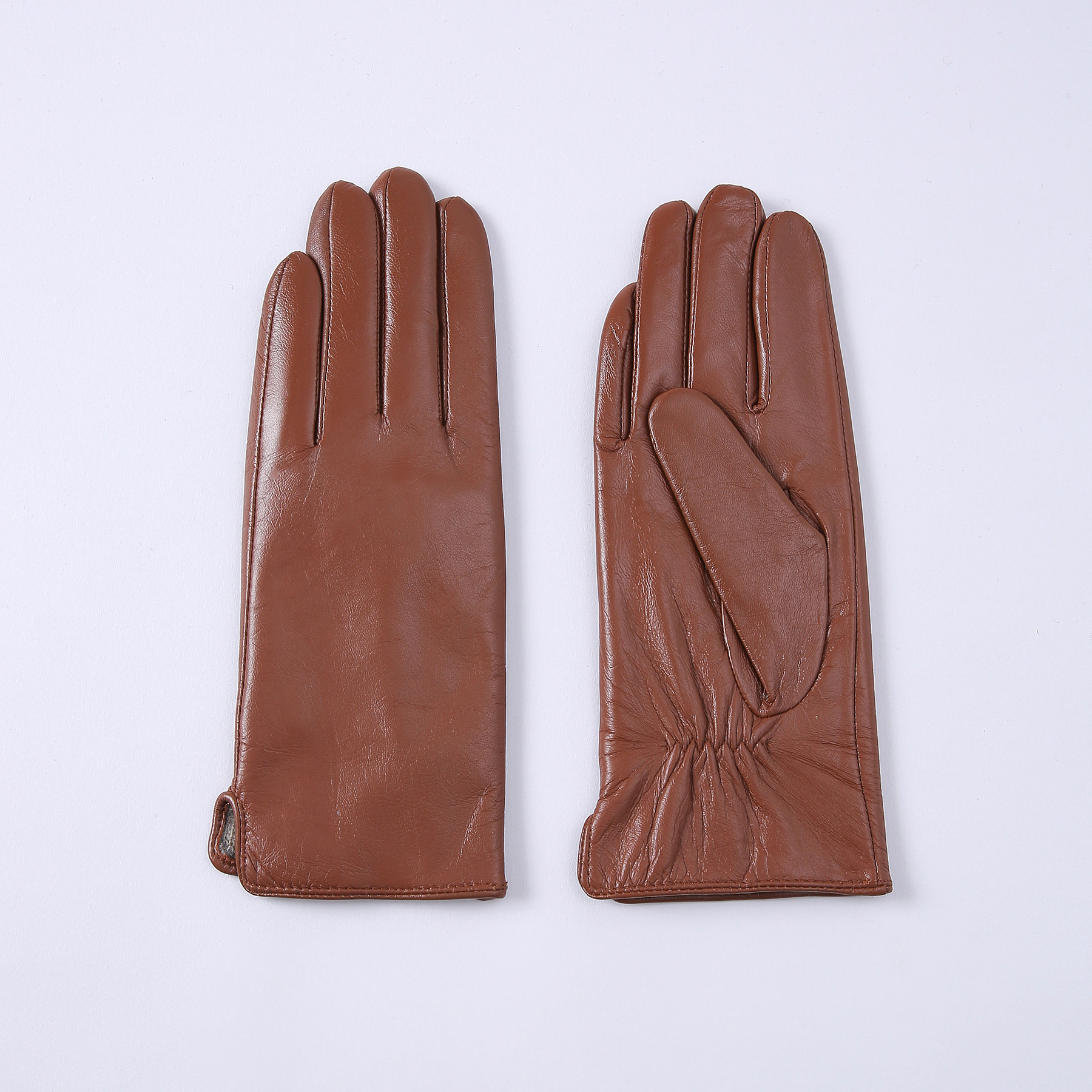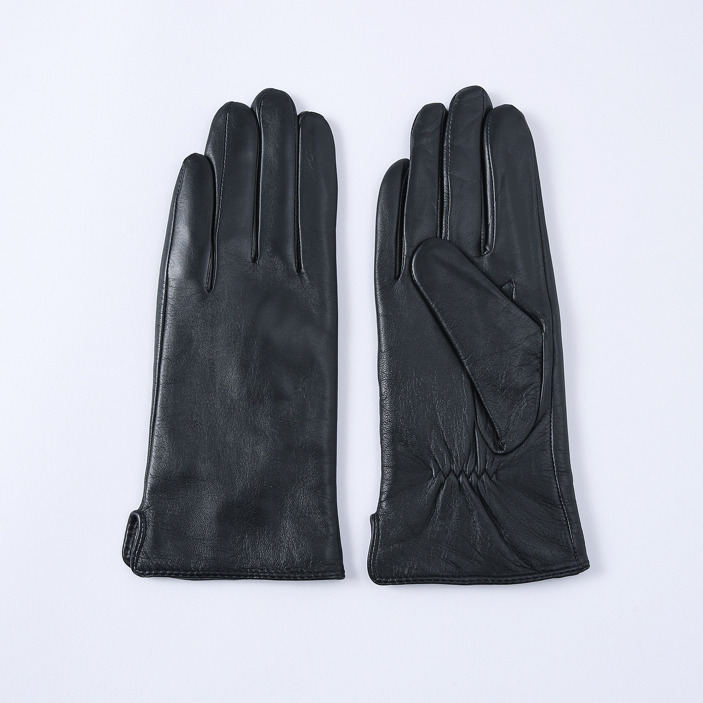 Womens Solid-Color Fleece-Lined Thermal Leather Gloves