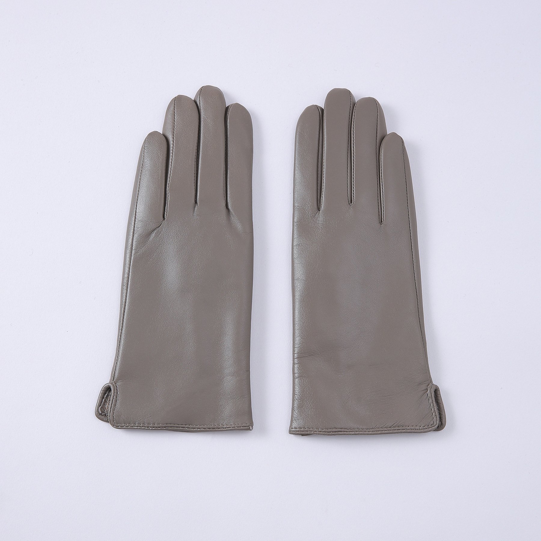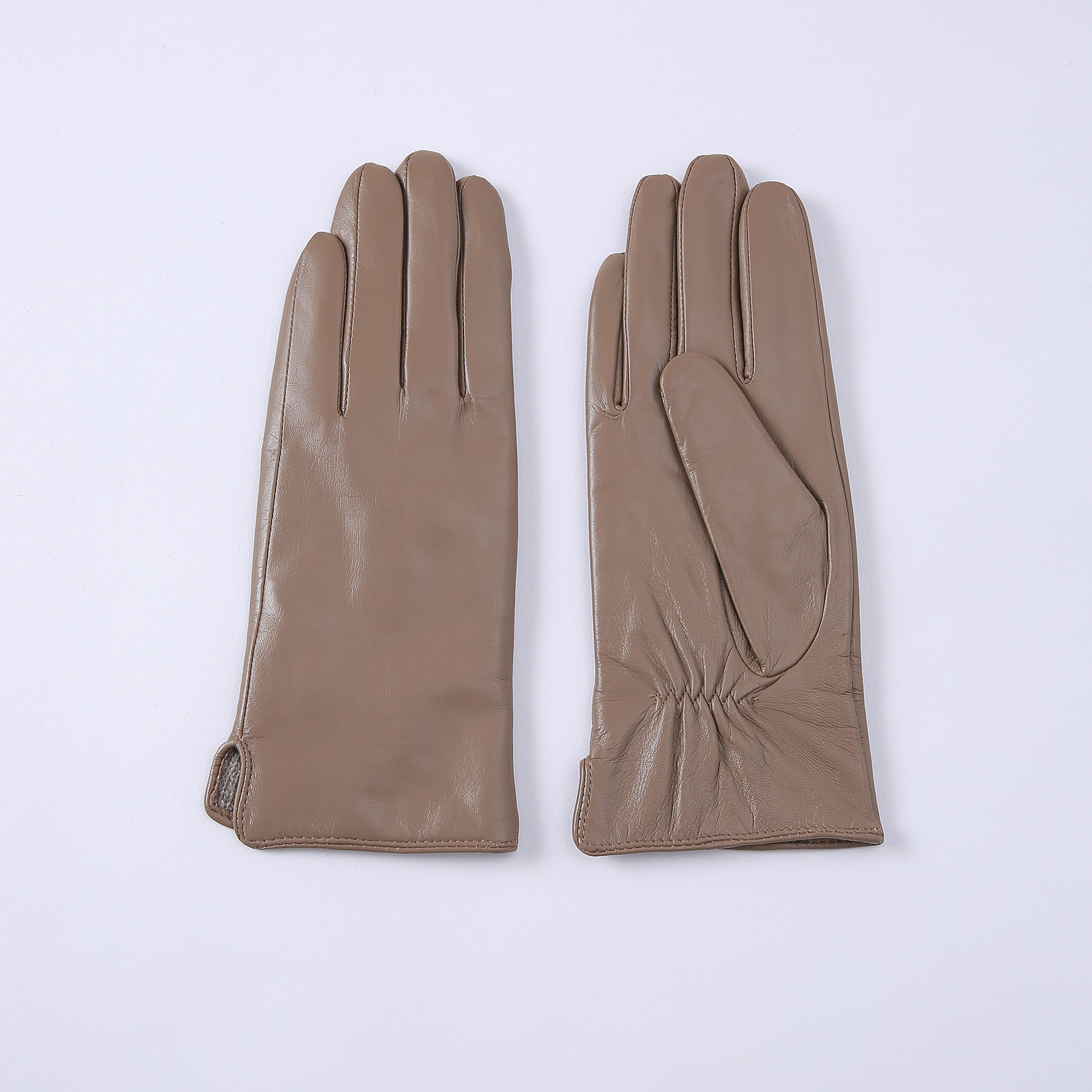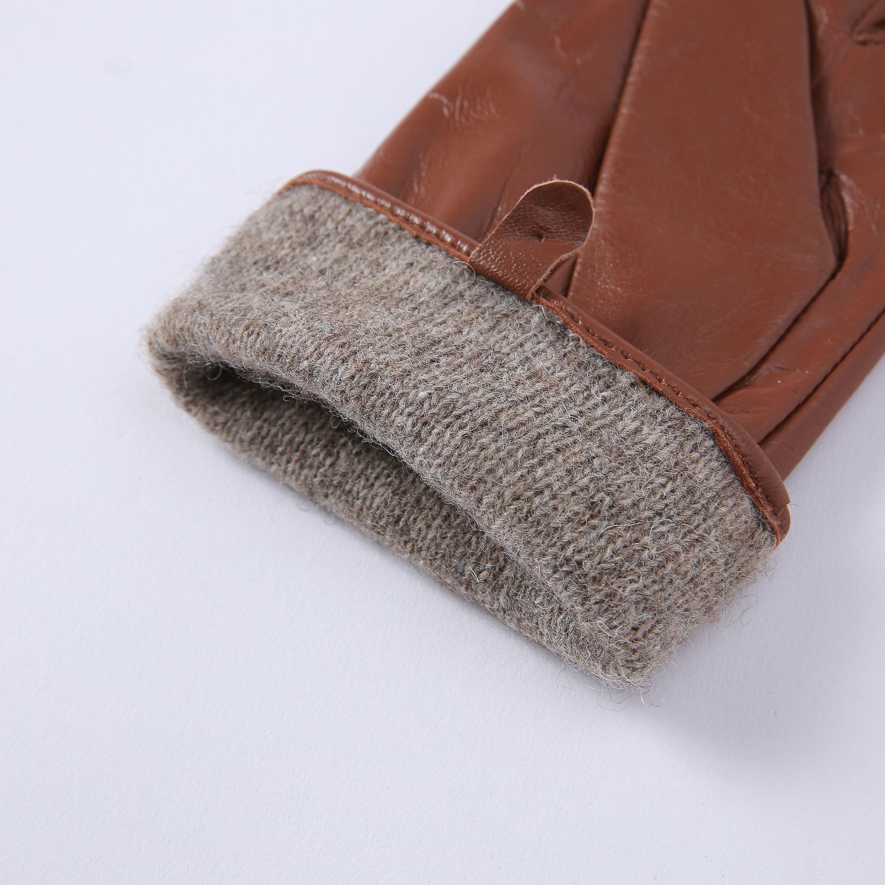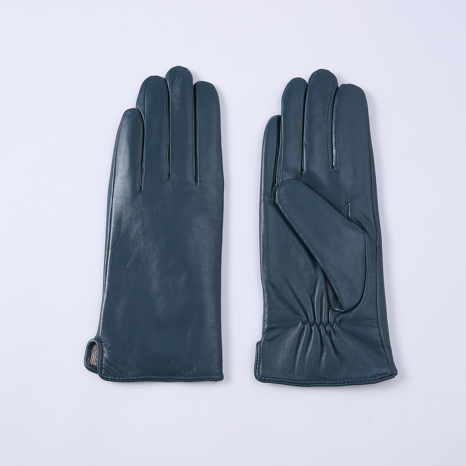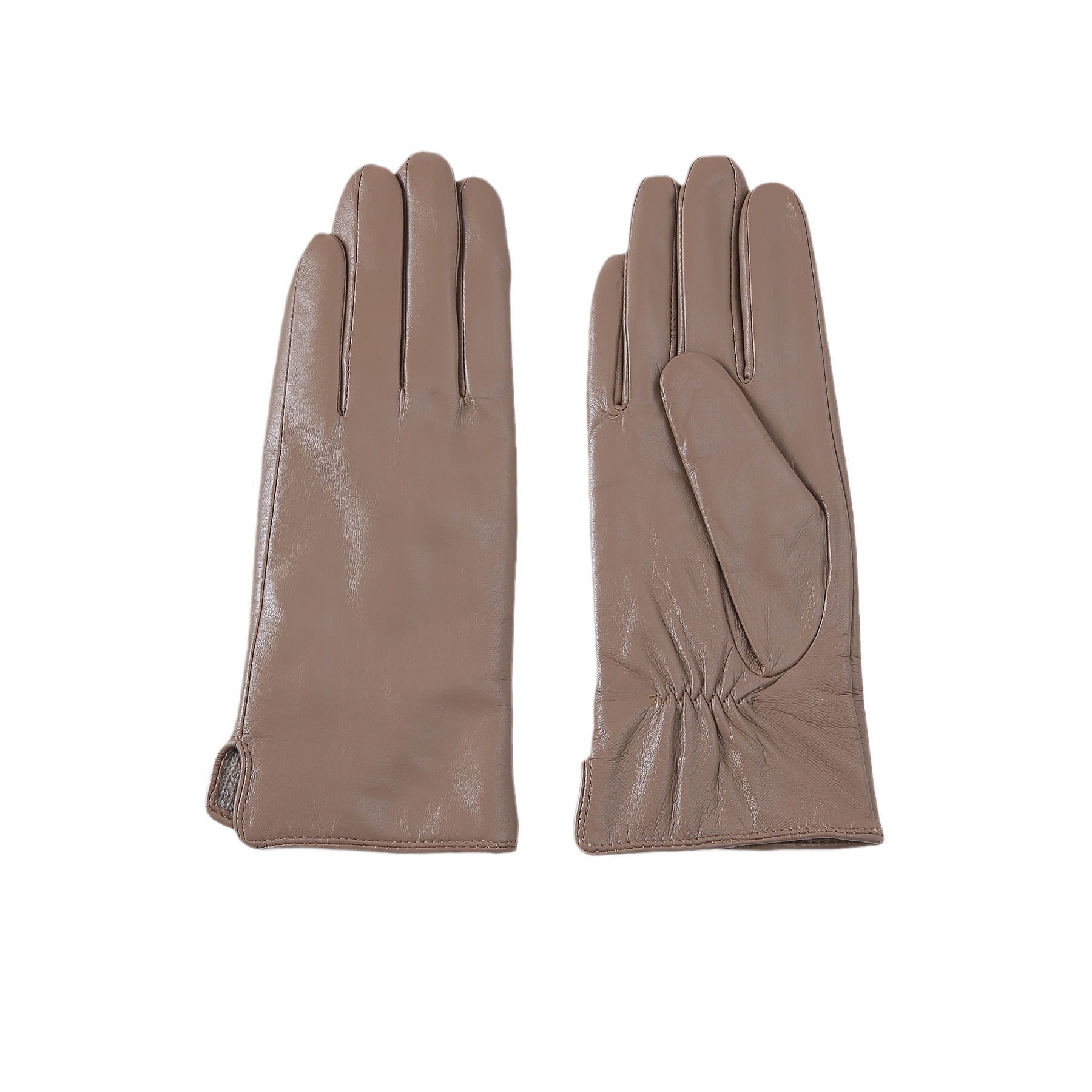Womens Solid-Color Fleece-Lined Thermal Leather Gloves