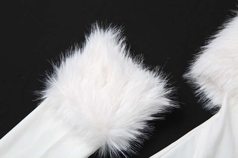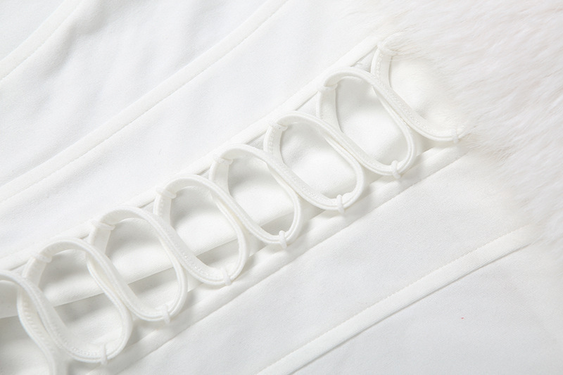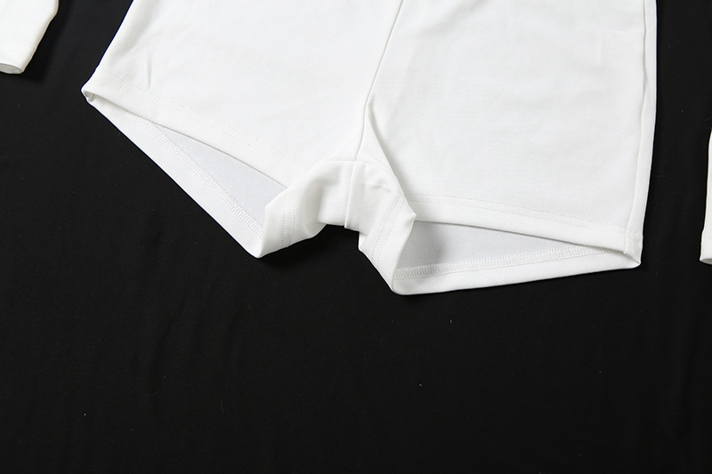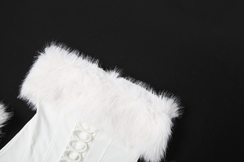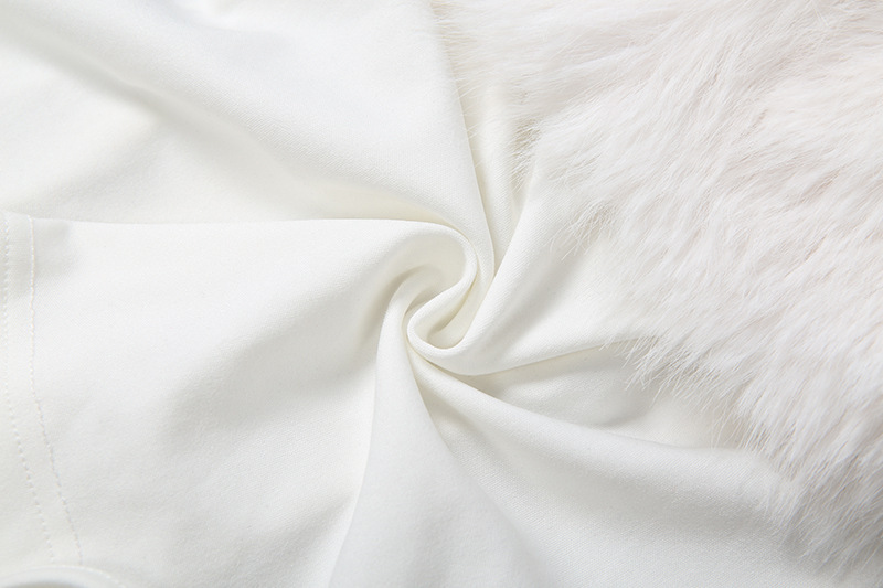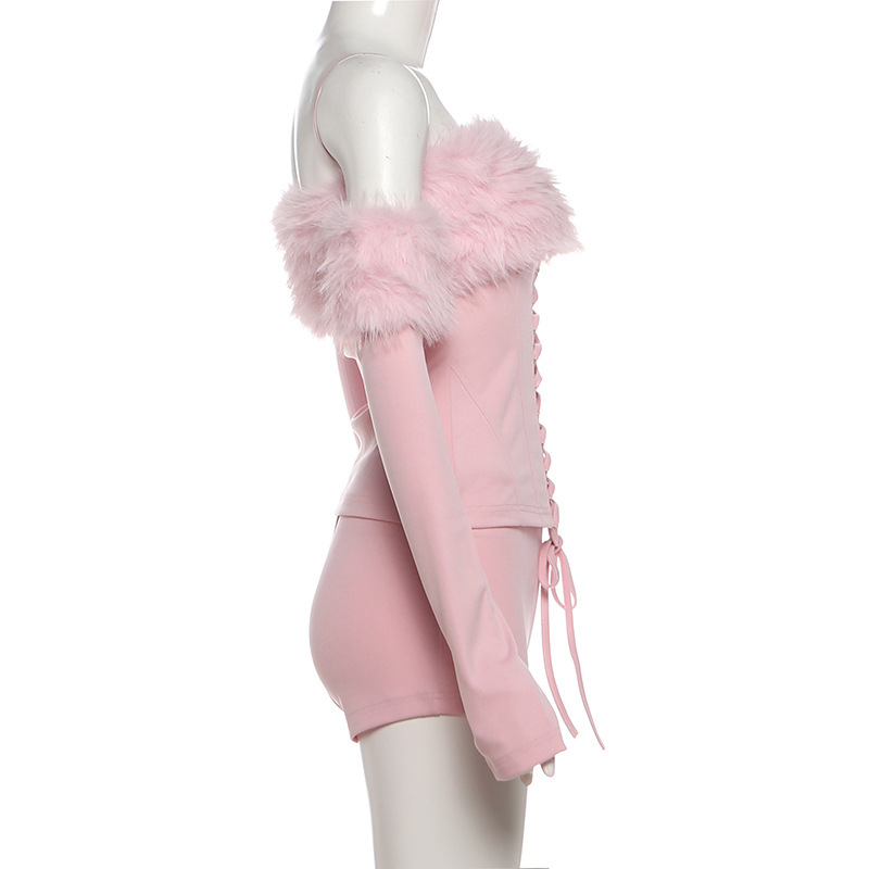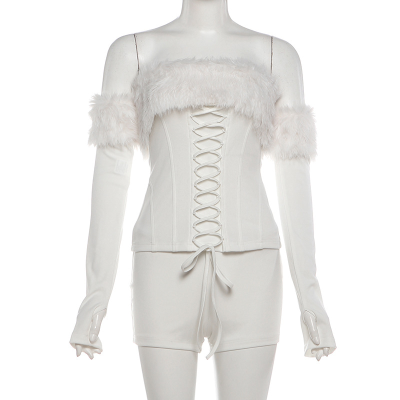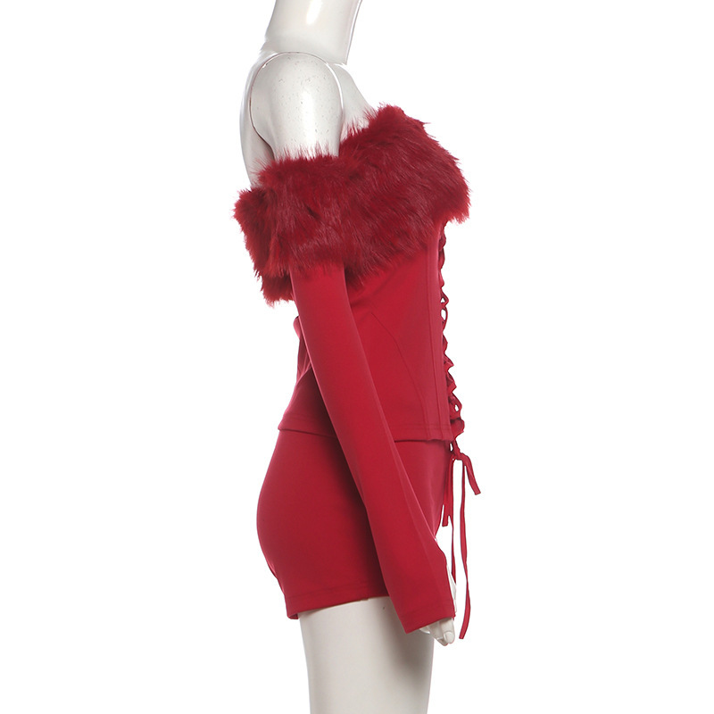 Womens Solid-Color Fluffy Patchwork Long-Sleeve Halter Top And Shorts Set